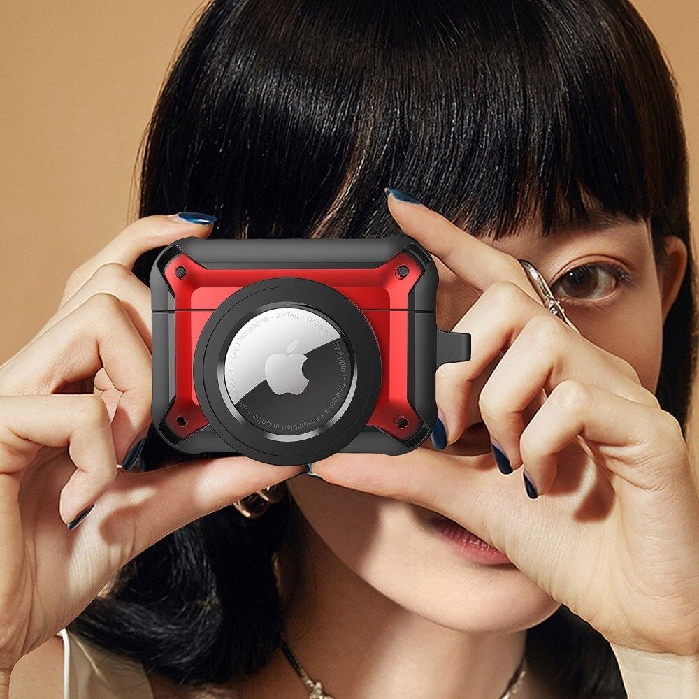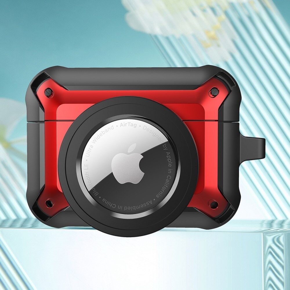 For Apple AirPods Pro + for AirTag Tracker Anti-drop Case Bluetooth Earphone Protective Cover - Red