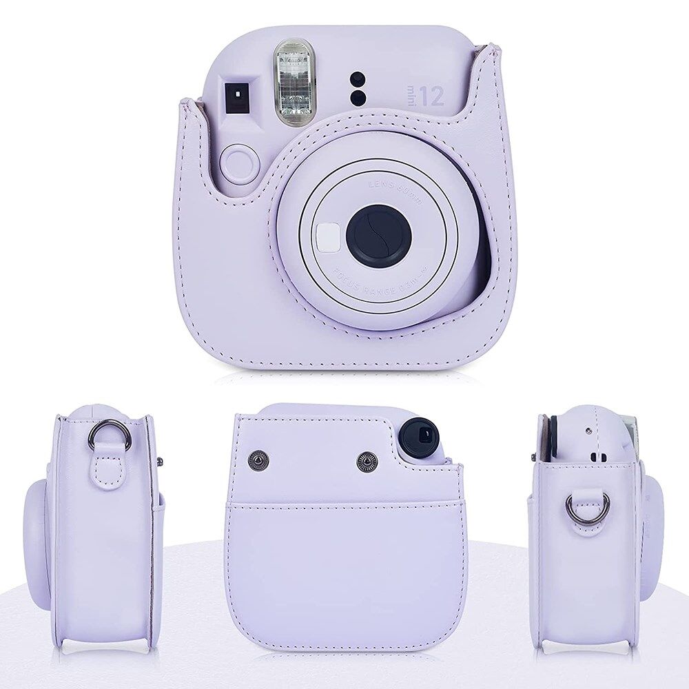 For FujiFilm Instax Mini 12 / 11 / 9 / 8 Camera Accessories 7-in-1 Bundle Kit Include Case, Film Stickers, Desk Frames, Hanging Frame - Purple