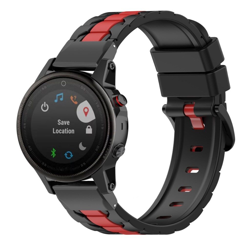 For Garmin Fenix 7 / 7 Solar / Fenix 6 / 6 GPS / 6 Pro GPS / Fenix 5 / 5 Plus / Quatix 5 Quick Release Watch Band 22mm Watch Strap Chain Stripes Silicone Watchband with Metal Connector - Black / Red