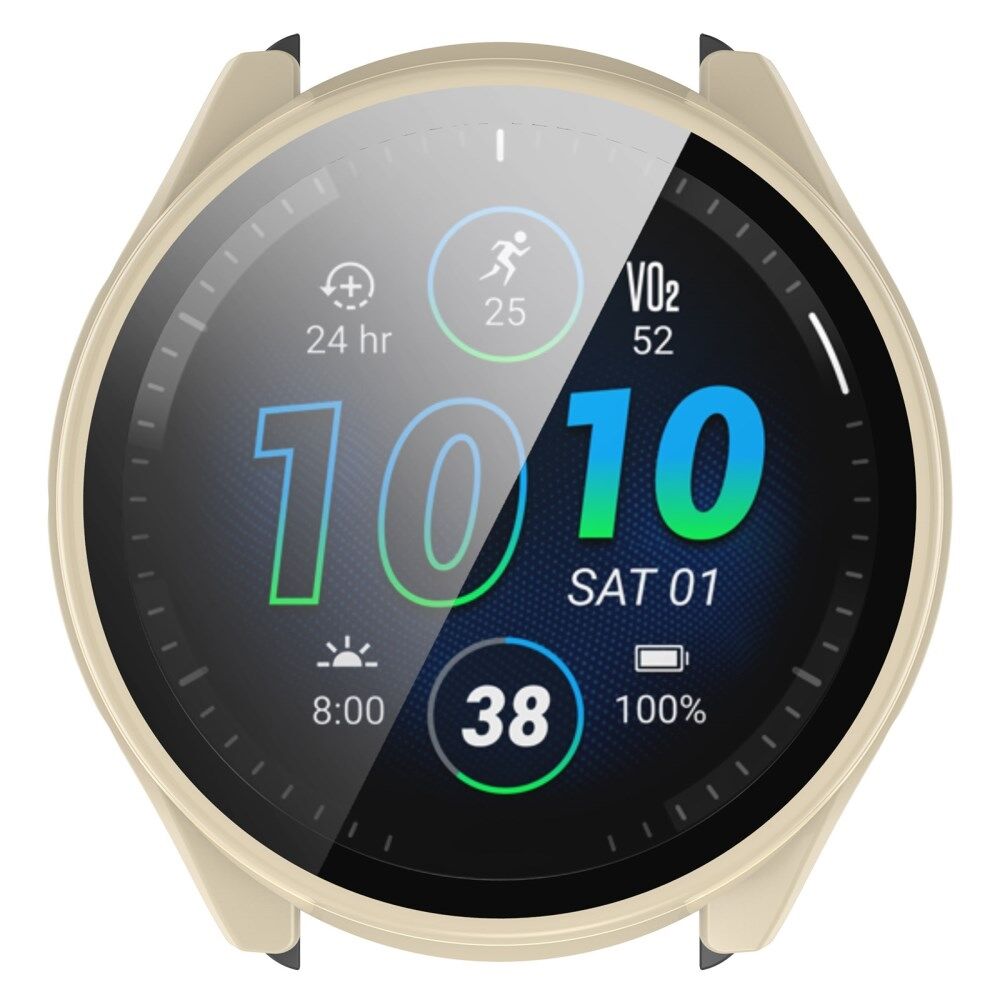 For Garmin Forerunner 965 Hard PC Watch Case Protective Frame with HD Tempered Glass Film - Ivory White