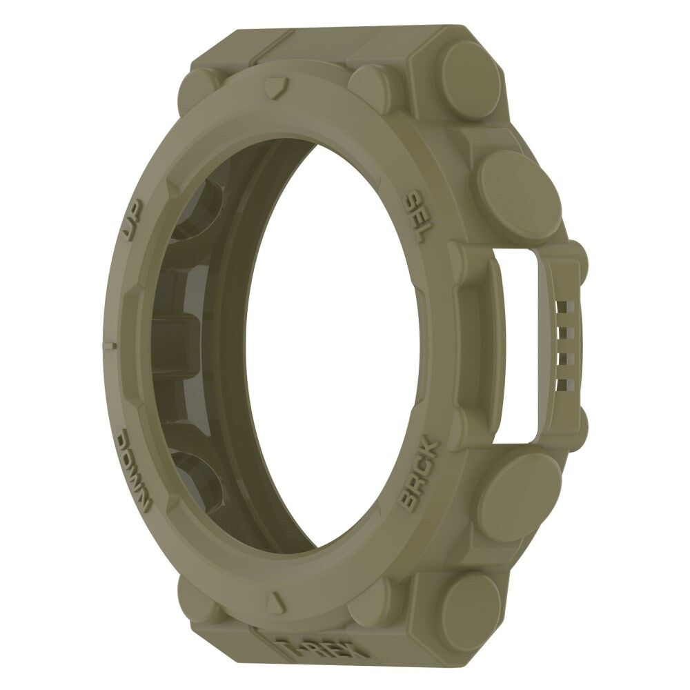 For Huami Amazfit T-Rex 2 Soft Flexible Rugged TPU Raised Bezel Frame Half Protective Watch Cover - Jungle Green