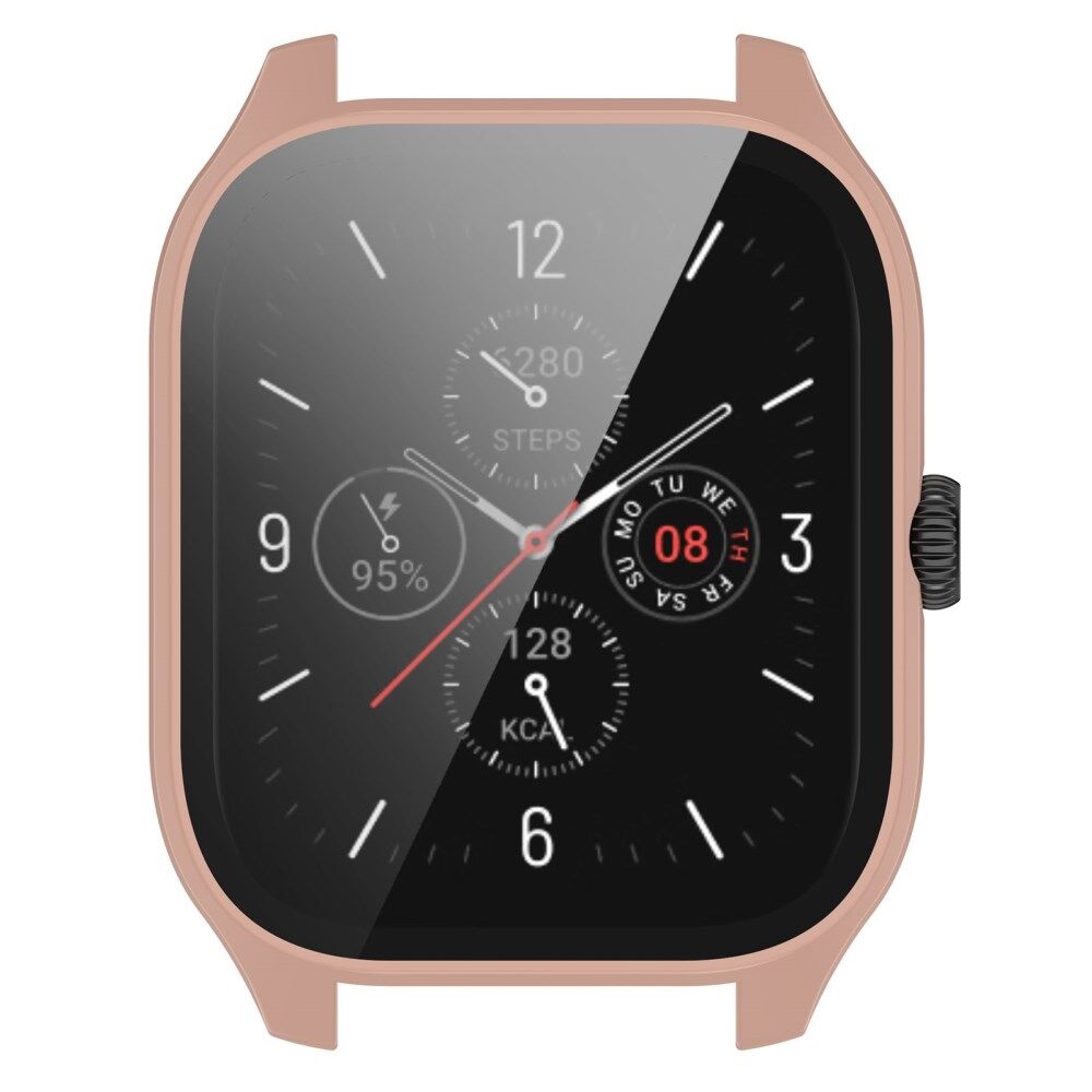 For Huami Amazfit GTS 4 Hard PC Case with Tempered Glass Screen Protector Scratch Resistant Overall Protective Cover - Sakura Pink