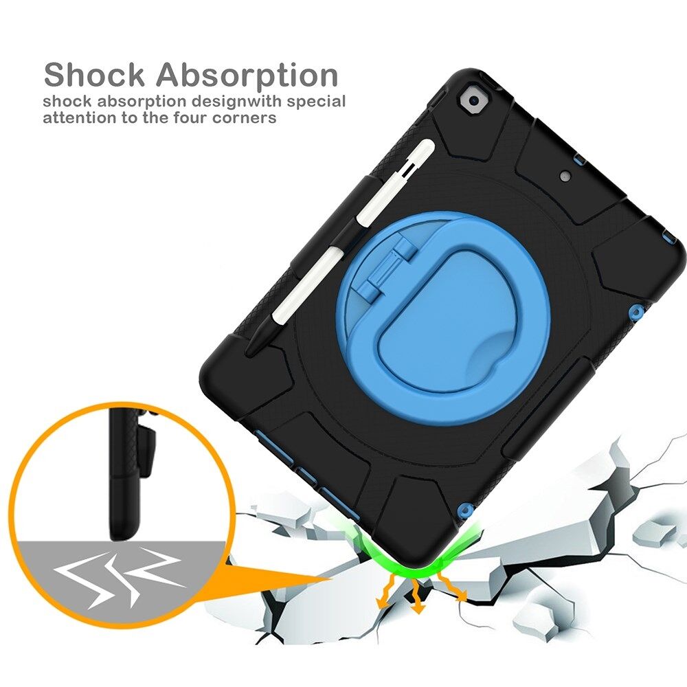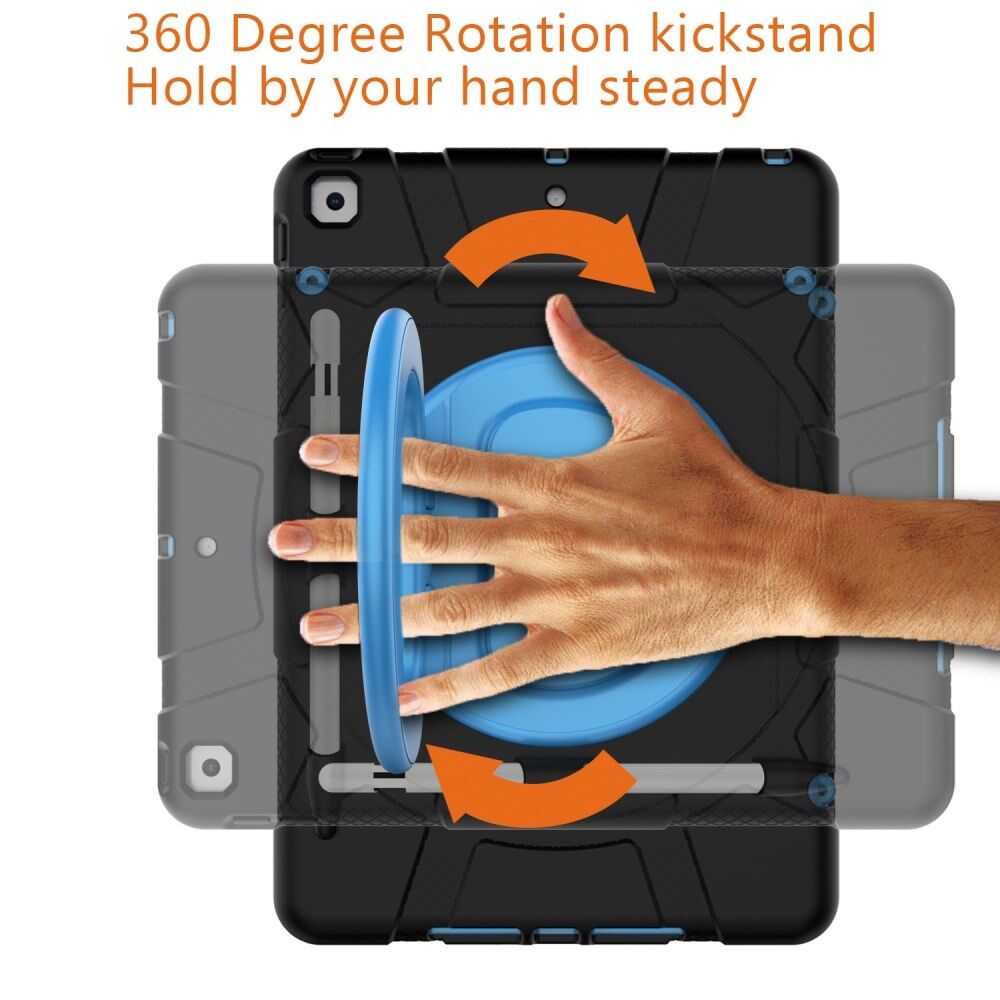 For iPad 10.2 (2019)/(2020)/(2021) P8 360 Degree Rotation Kickstand Design PC + Silicone Shockproof Tablet Case Cover - Black / Blue