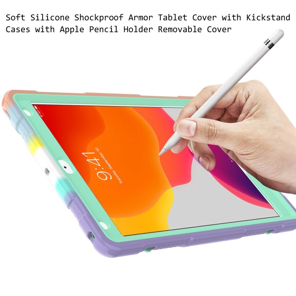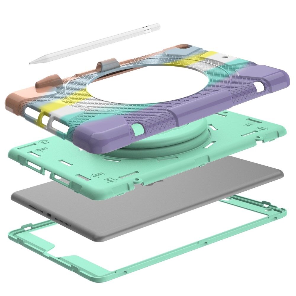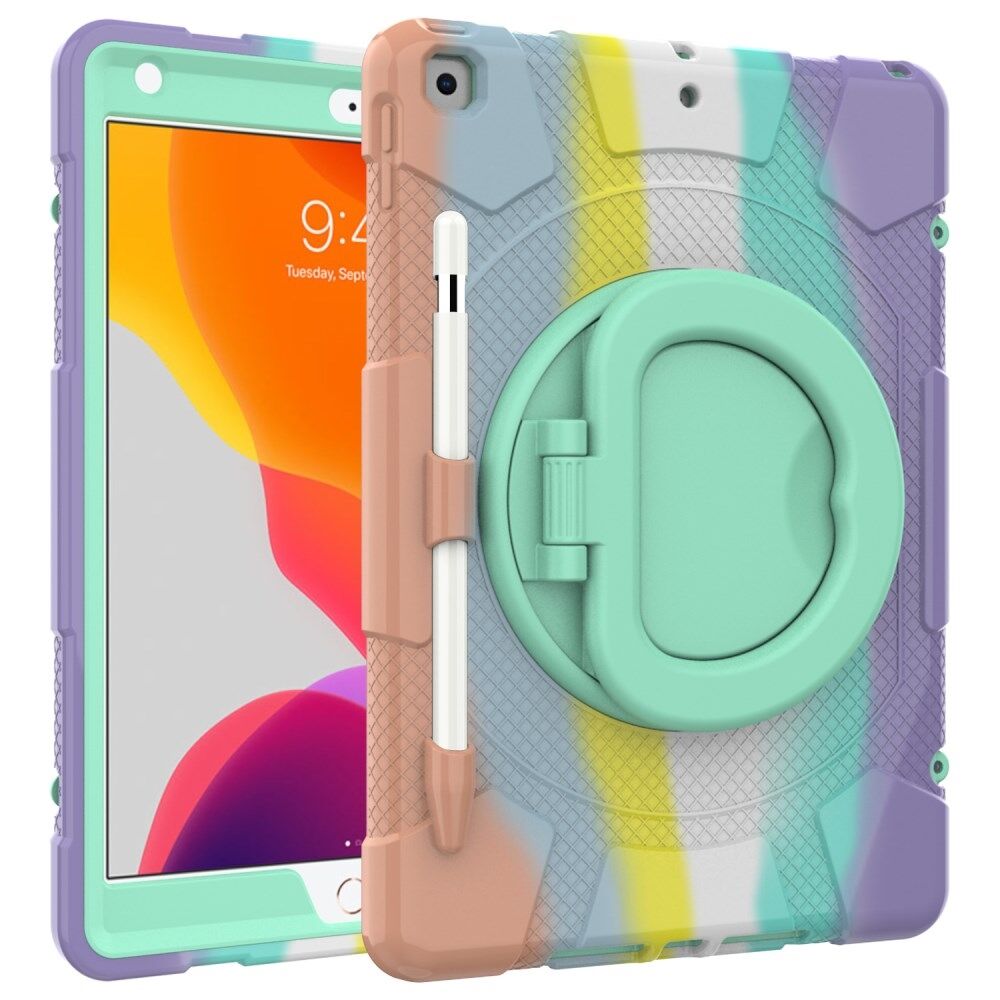 For iPad 10.2 (2019)/(2020)/(2021) P8 Rainbow Color 360 Degree Rotation Kickstand Tablet Case PC + Silicone Hybrid Cover