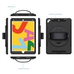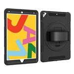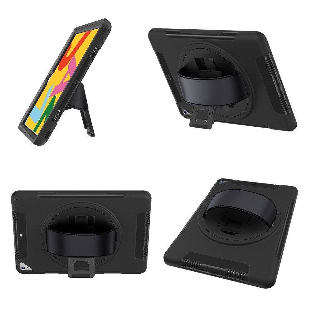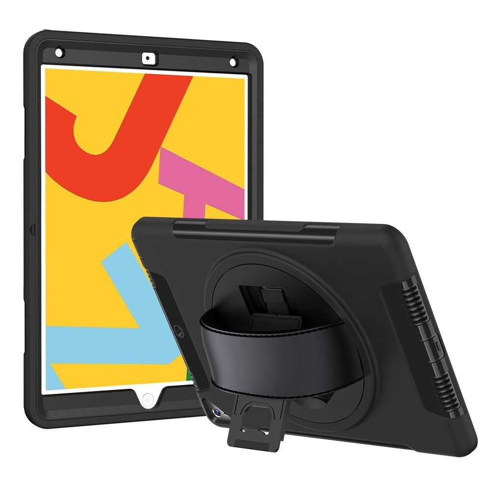 For iPad 10.2 (2021)/(2020)/(2019) 360 Degree Rotary Hand Strap Kickstand Tablet Case Heavy Duty PC TPU Hybrid Cover - Black