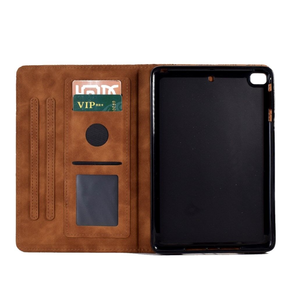 For iPad mini (2019) 7.9 inch / mini 4 / 3 / 2 / 1 Tablet Cover PU Leather Stand Card Holder Imprinted Tree Tablet Case - Brown