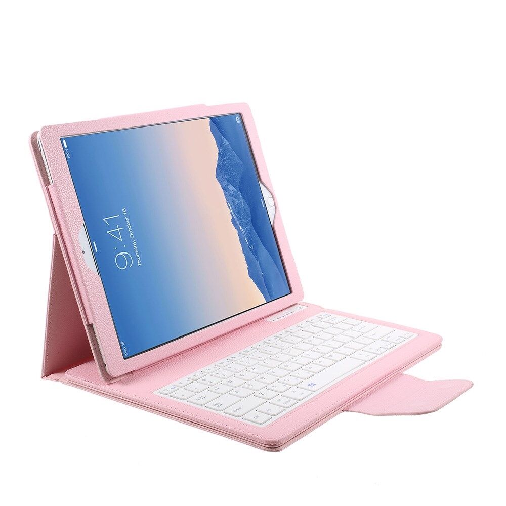 For iPad Pro 12.9-inch (2017) Leather Protective Case with Detachable Bluetooth Keyboard - Pink