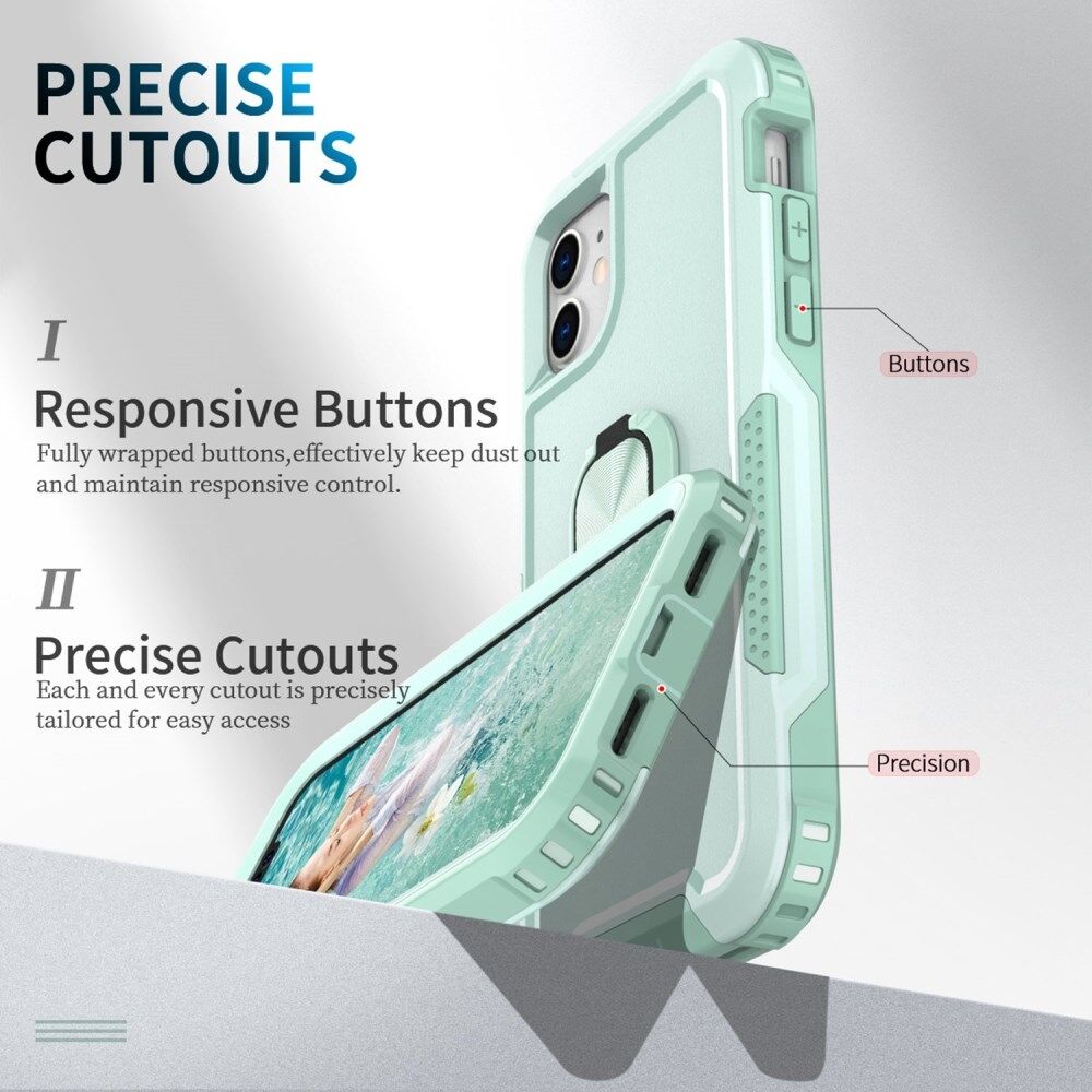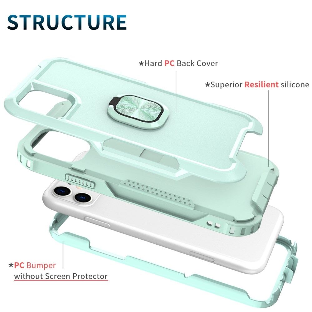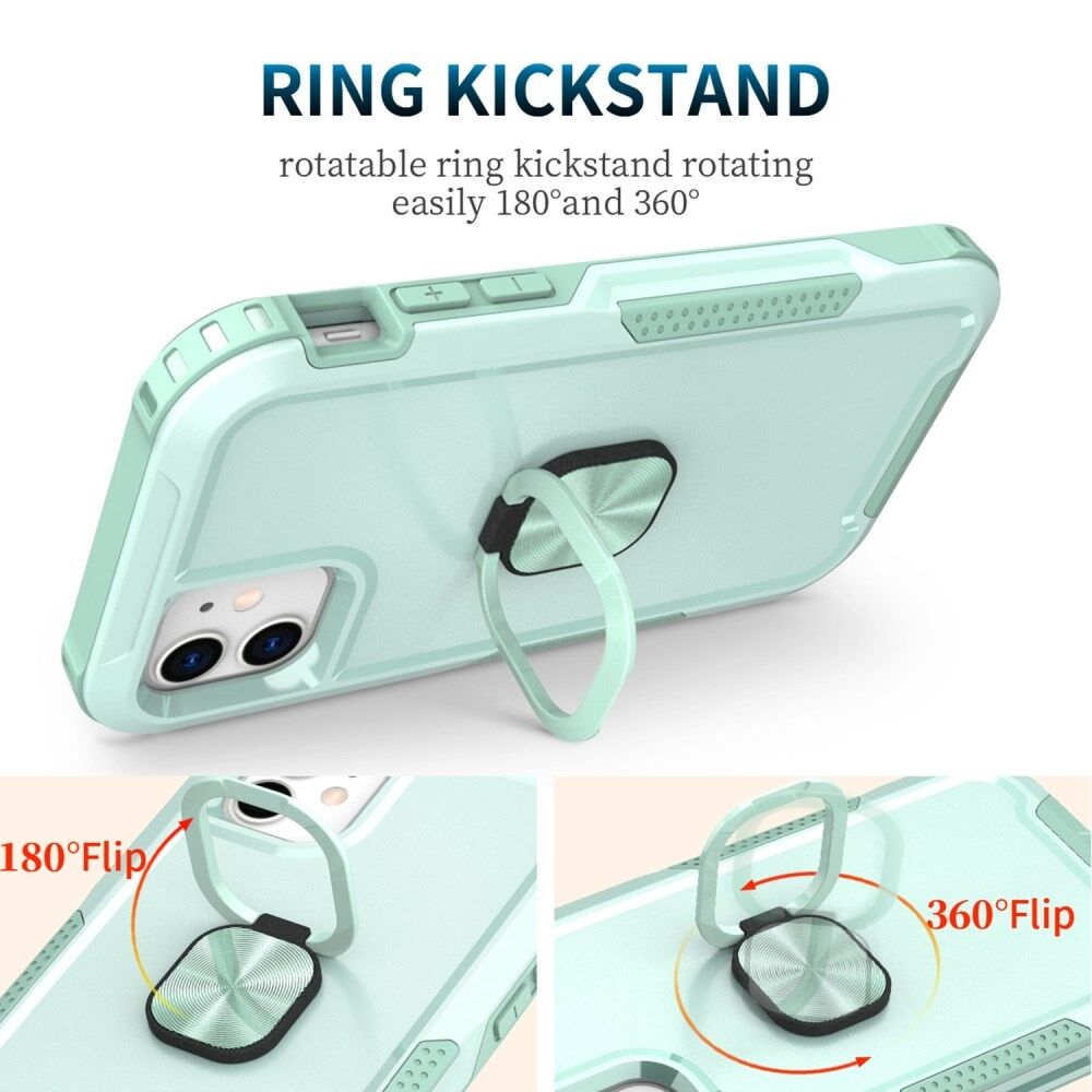 For iPhone 11 6.1 inch Drop-proof PC + Silicone Phone Case Rotatable Ring Kickstand Wear-resistant Phone Cover - Green