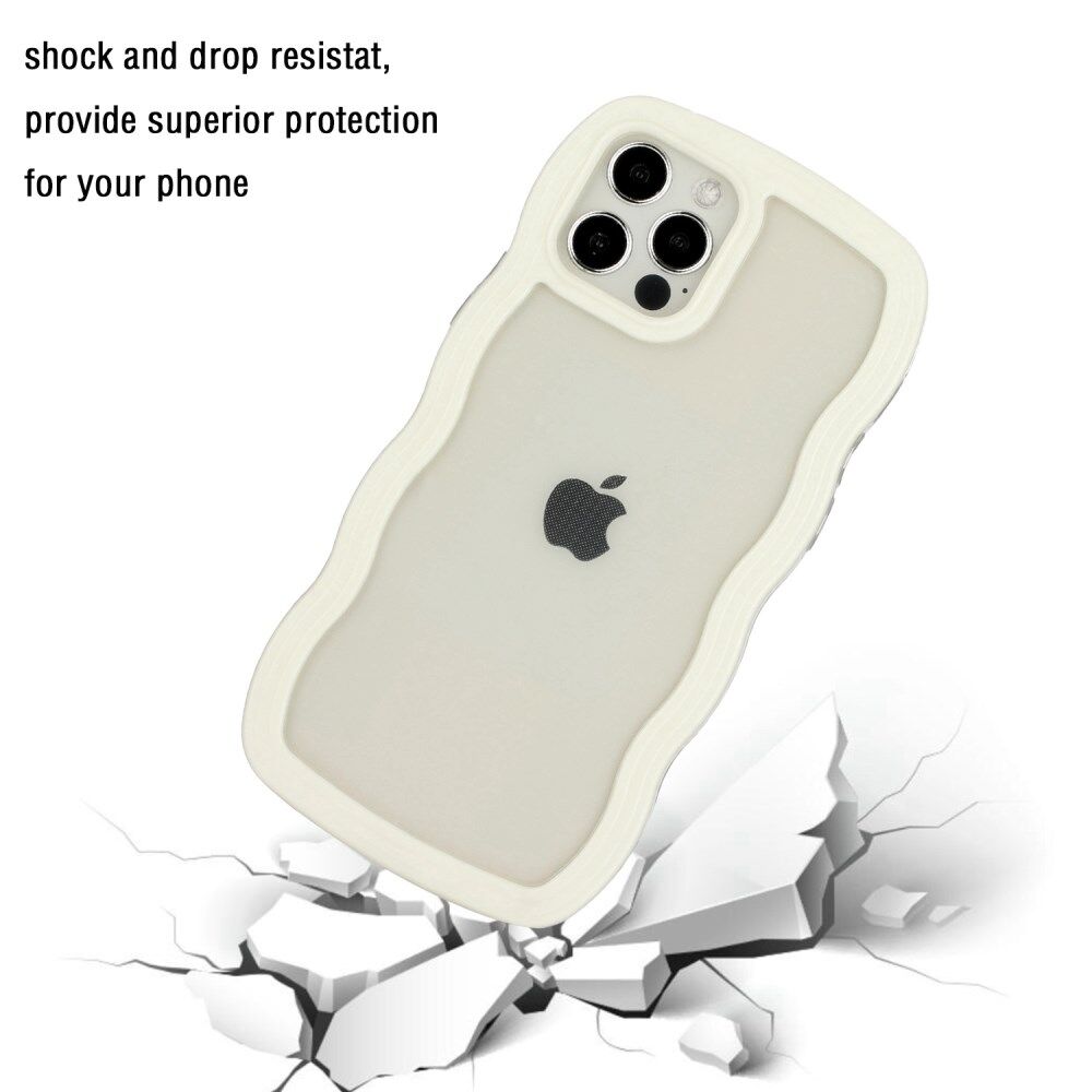 For iPhone 12/12 Pro 6.1 inch Wavy Edge Color Frame Transparent Back Cover Bump Proof PC + TPU Phone Case - White