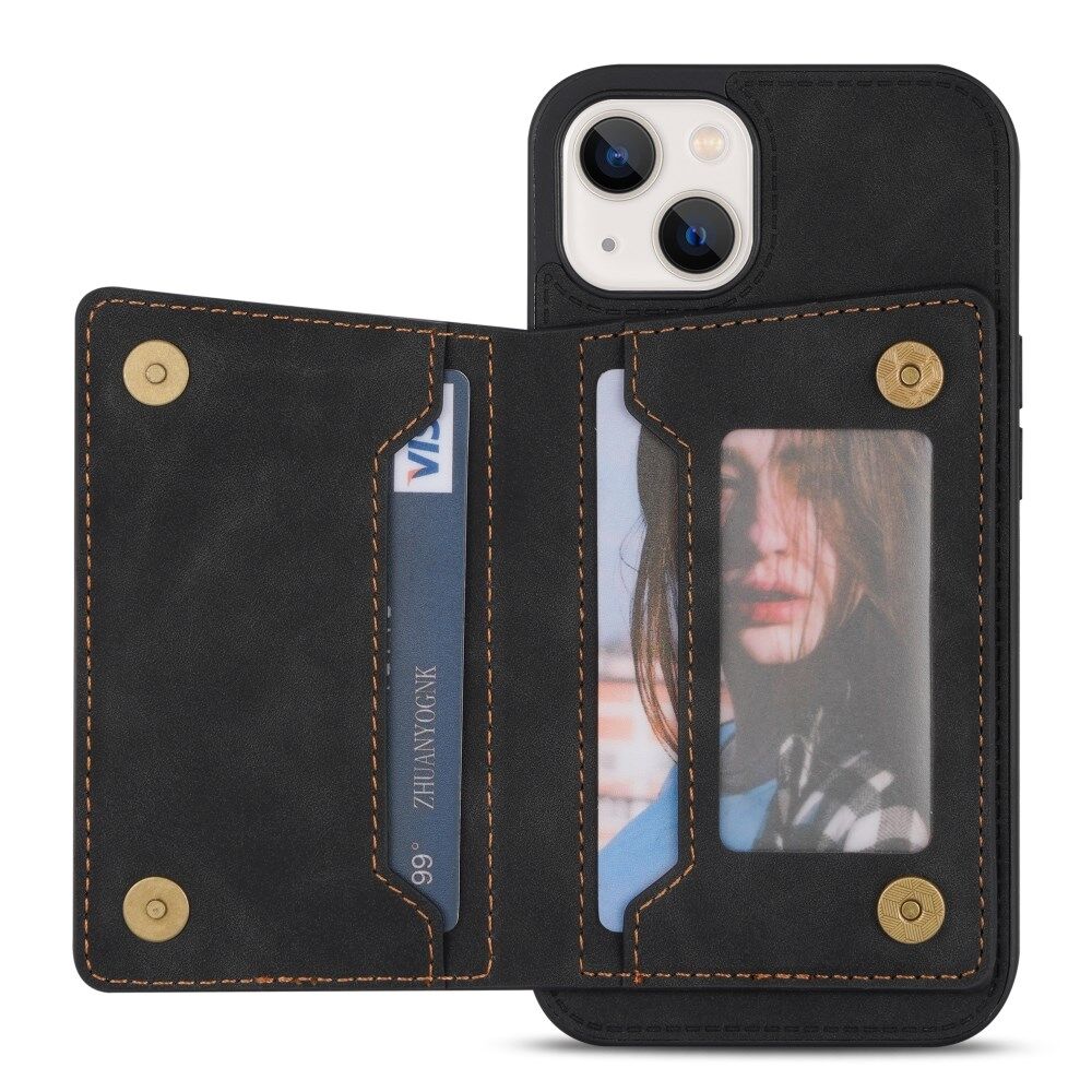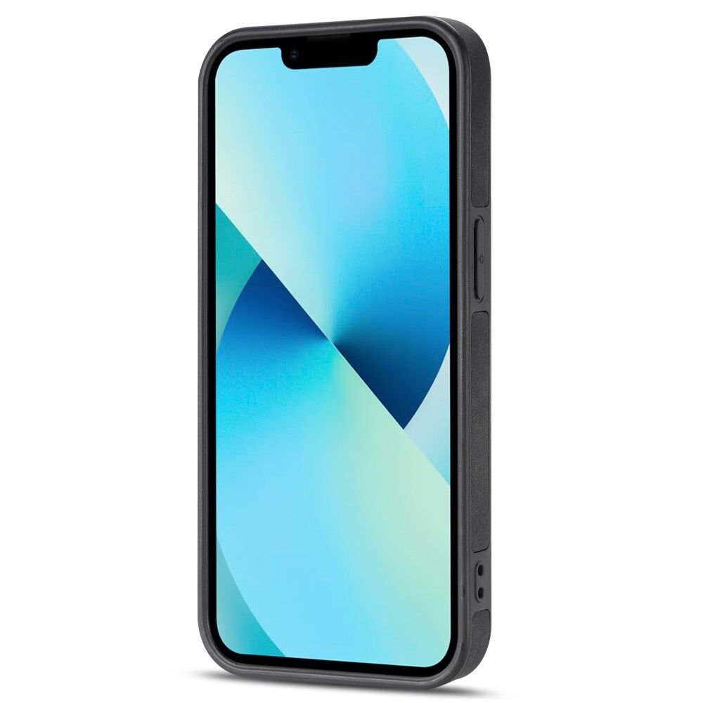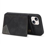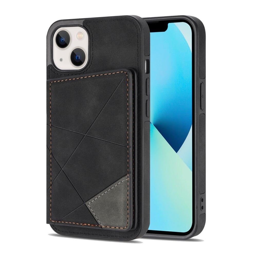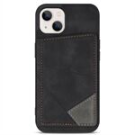 For iPhone 13 6.1 inch Line Splicing Imprinting PU Leather Phone Back Case with Kickstand Card Pocket - Black