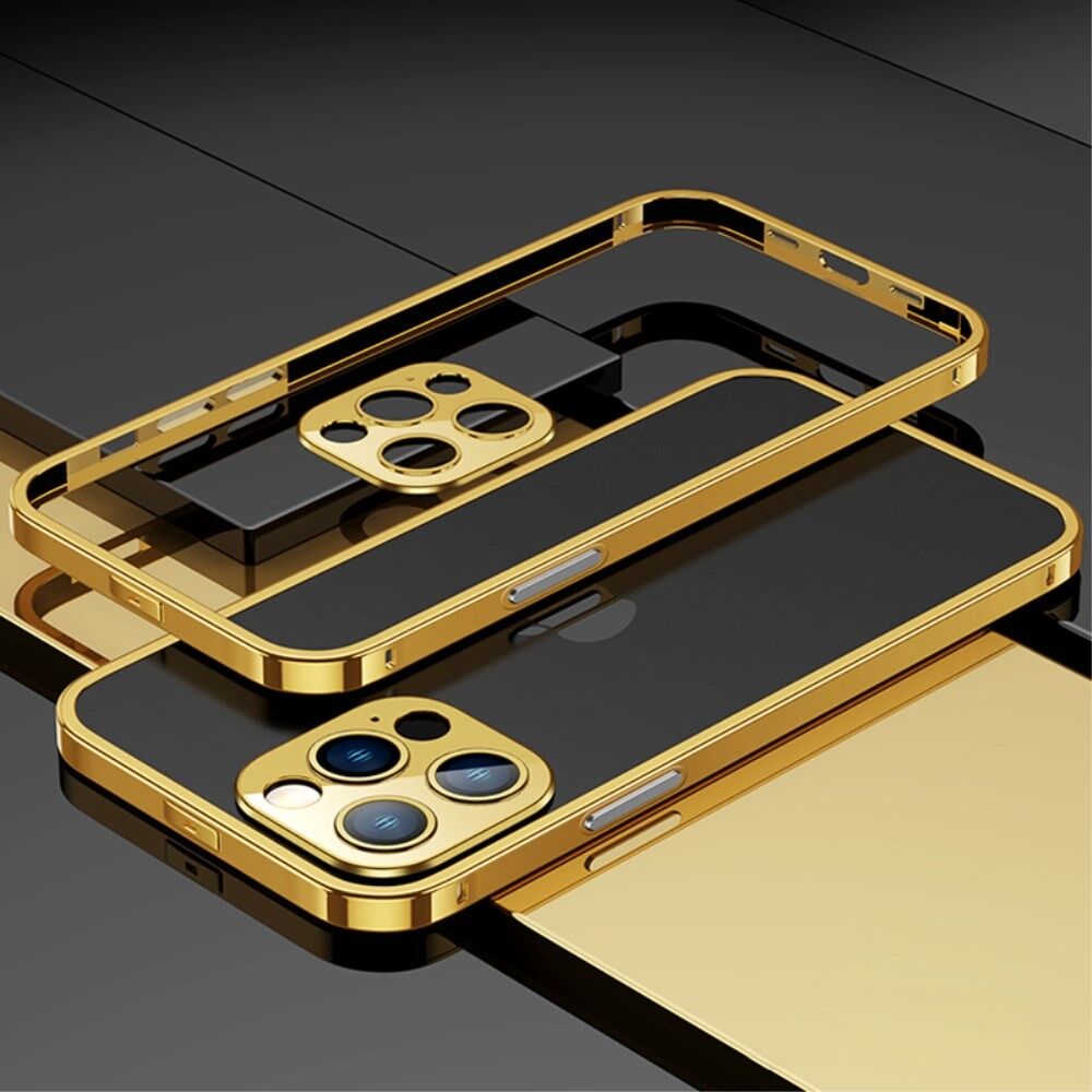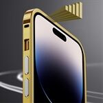 For iPhone 14 Pro Max Electroplating Metal Frame Aluminium Alloy Phone Protective Case + Camera Lens Cover - Gold