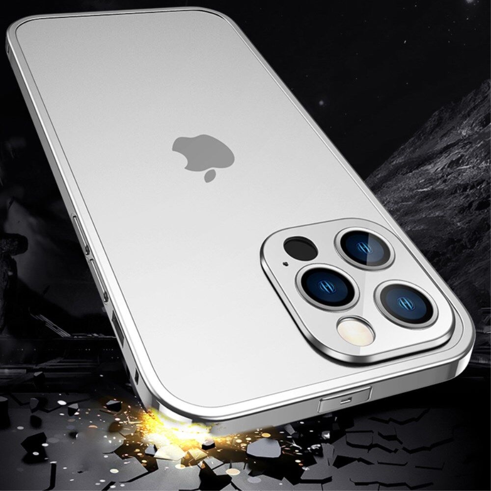 For iPhone 14 Pro Max Electroplating Metal Frame Aluminium Alloy Phone Protective Case + Camera Lens Cover