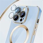For iPhone 14 Pro 6.1 inch Drop-proof Phone Case Gold Edge TPU Protective Back Cover Support Wireless Magnetic Charging