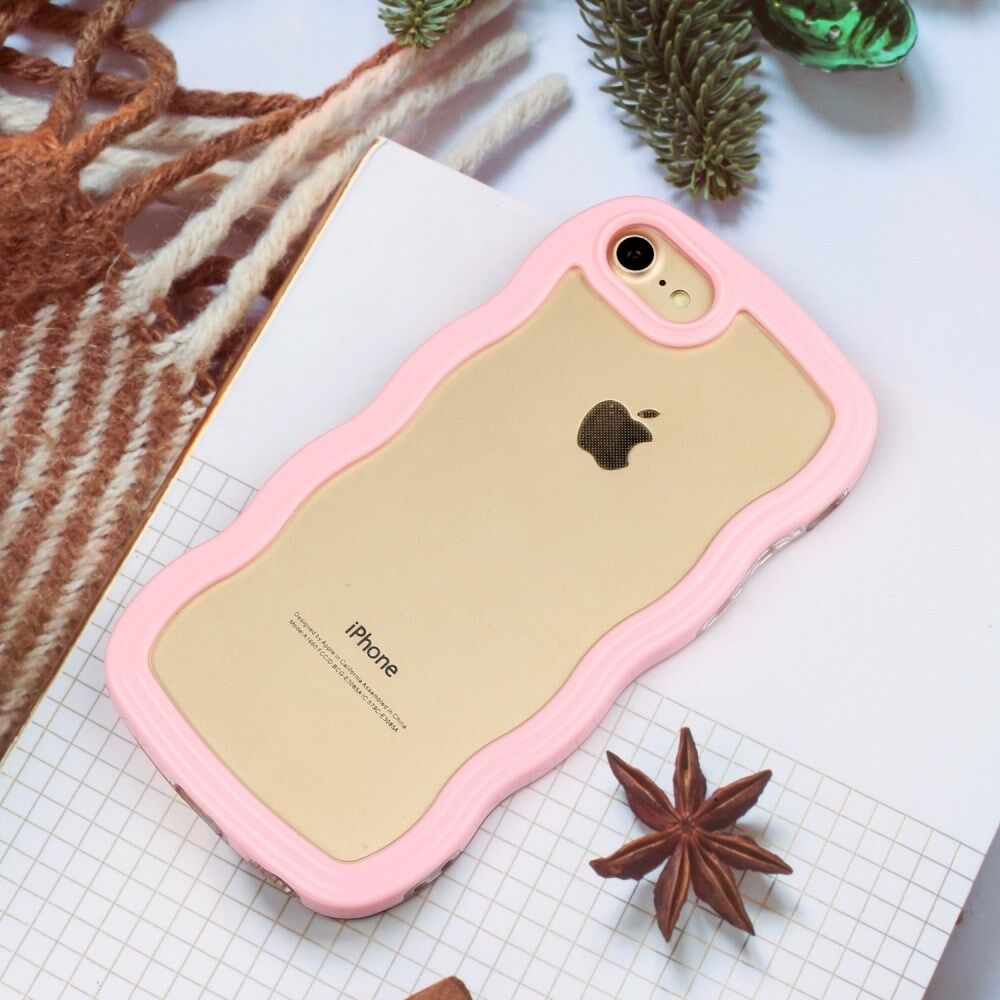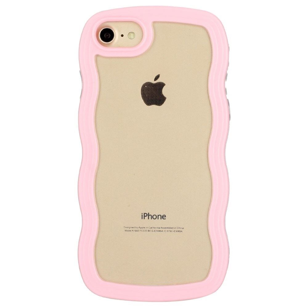For iPhone 7/8/SE (2020)/SE (2022) Wavy Edge PC + TPU Phone Case Color Frame Transparent Back Cover - Pink