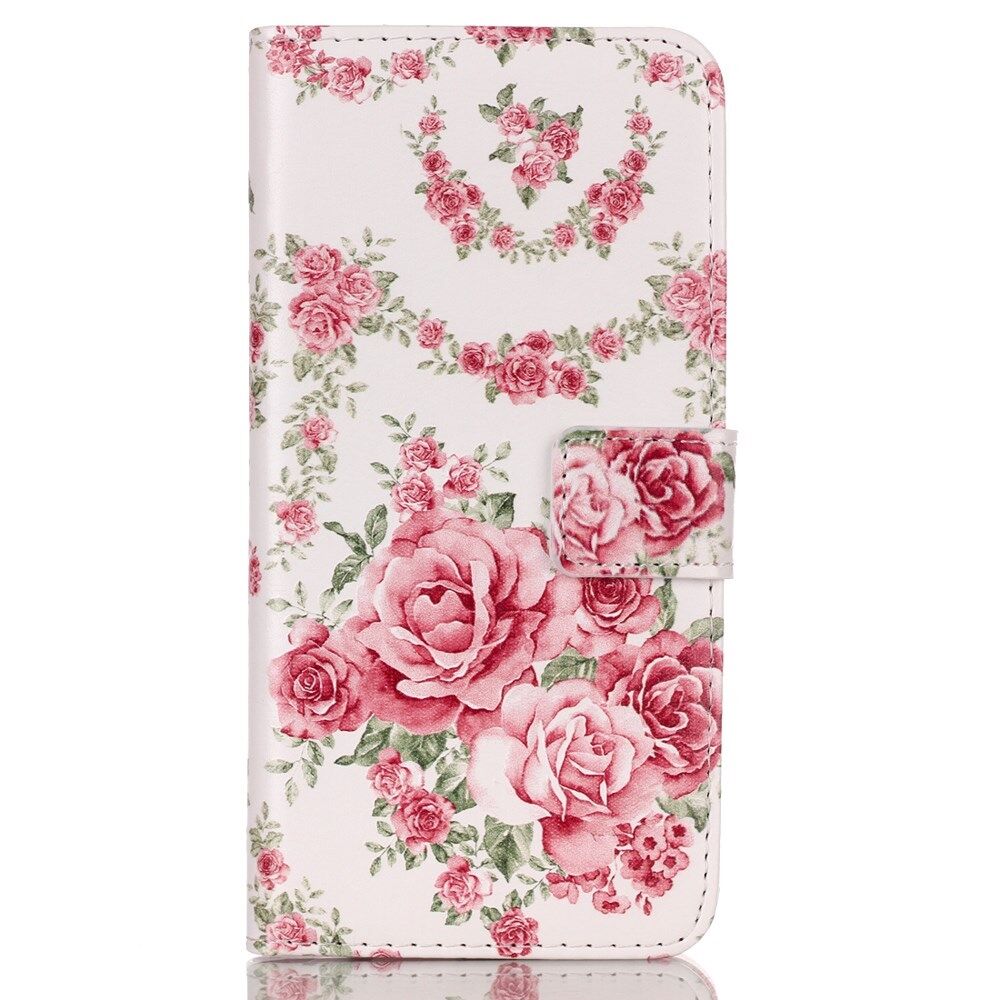 For iPhone SE 5s 5 Embossed Pattern Leatherette Wallet Stand Case - Elegant Girly Roses