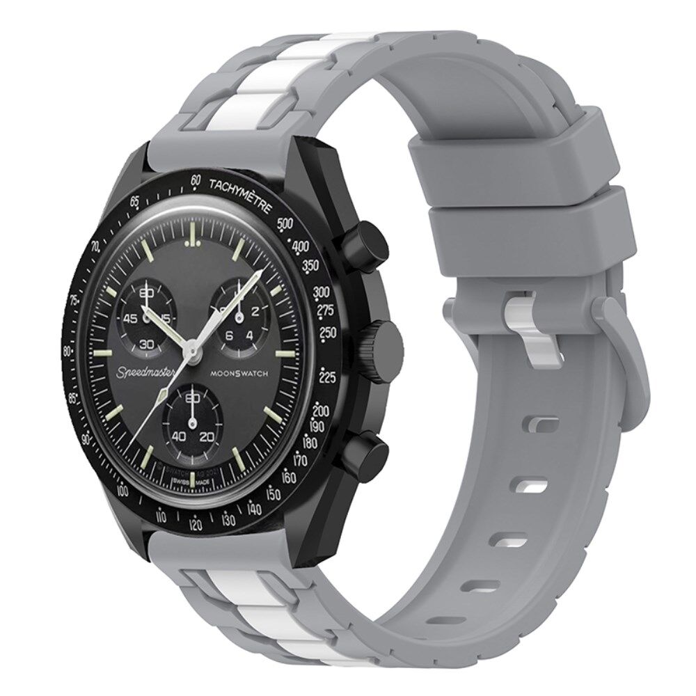 For Omega Swatch Joint MoonSwatch 20mm Smart Watch Strap Dual Color Chain Shape Design Wrist Band Replacement - Grey / White