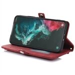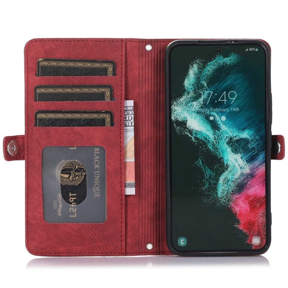 For Samsung Galaxy S21 Ultra 5G Zipper Wallet Case PU Leather Stand Multi-Functional 9 Card Slots Magnetic Cover with Strap - Red