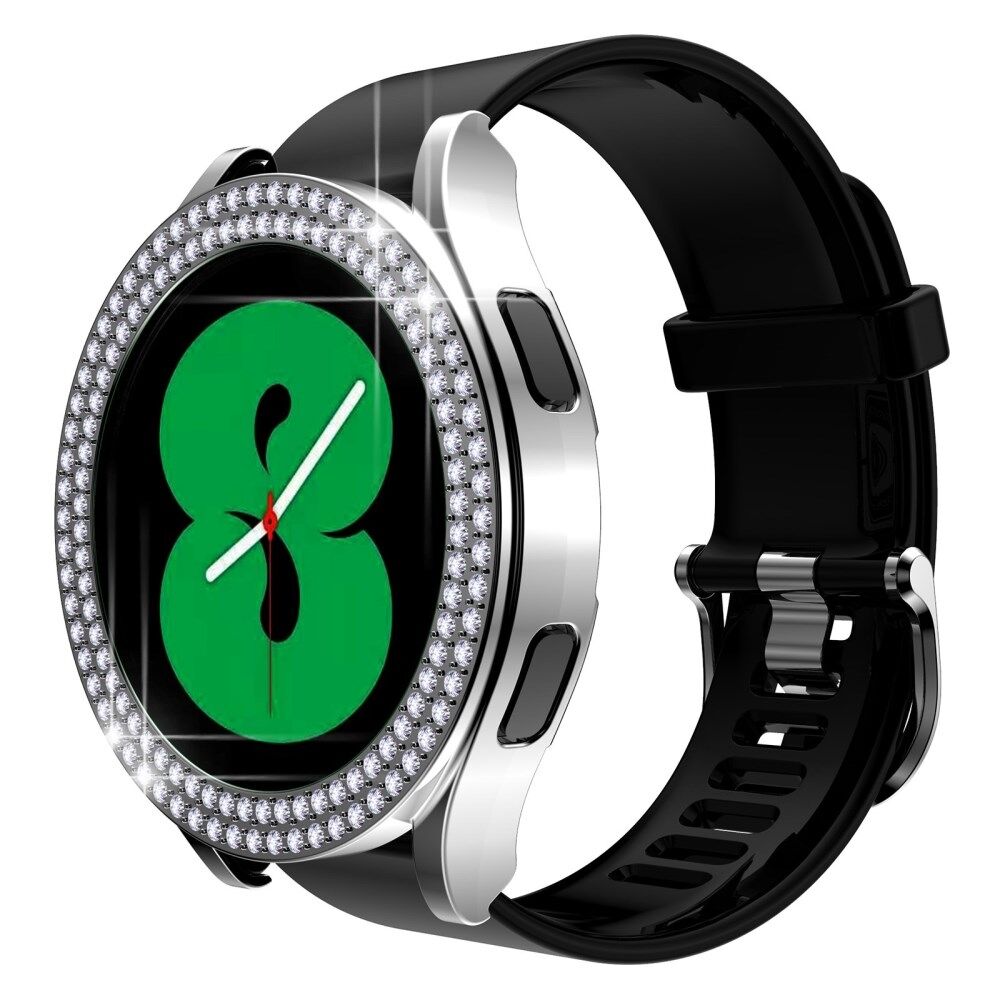 For Samsung Galaxy Watch 5 40mm Double Row Rhinestones Decor PC Watch Protective Case Half Cover - Silver