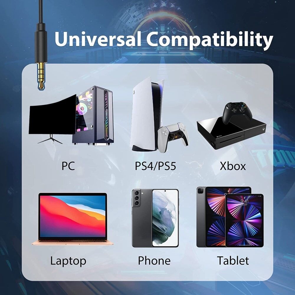 • The 3.5mm plug provides wide compatibility, allowing you to use the gaming microphone for PS4, for PS5, for Xbox One X/S, PC. Plug and play without any drivers