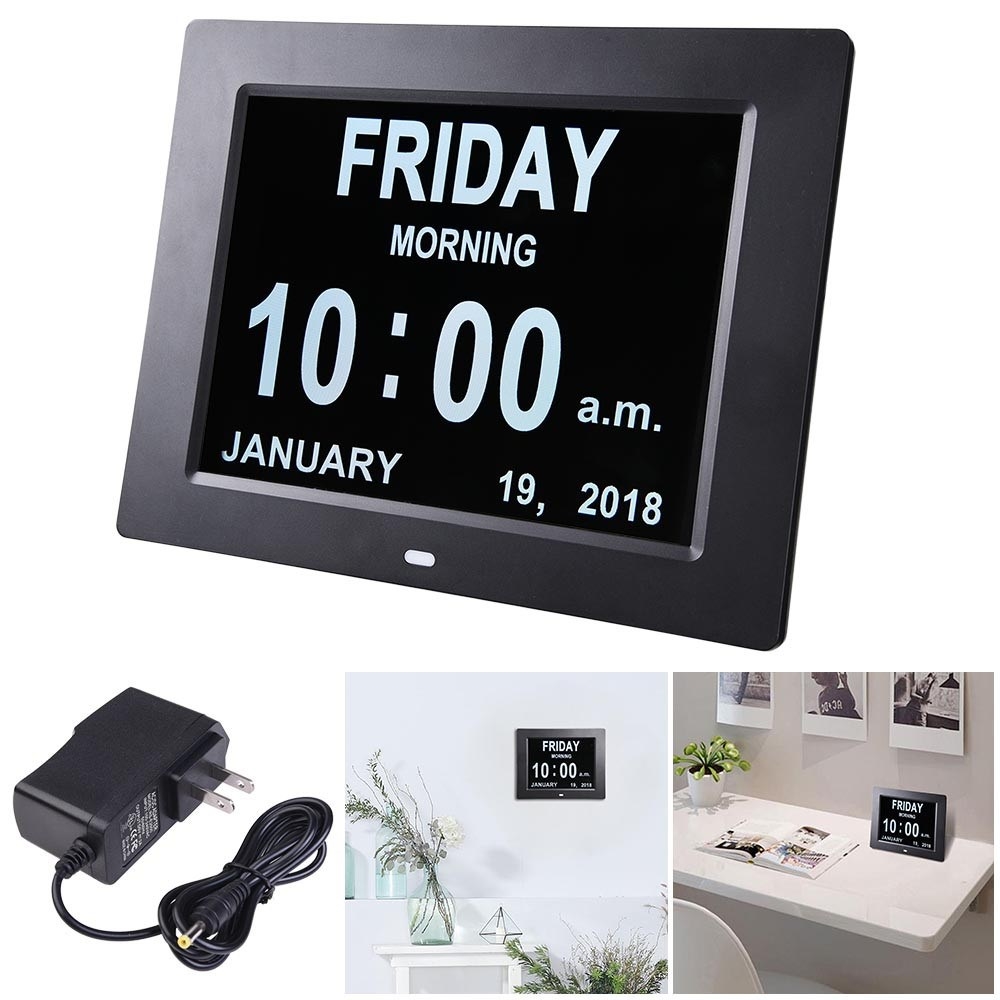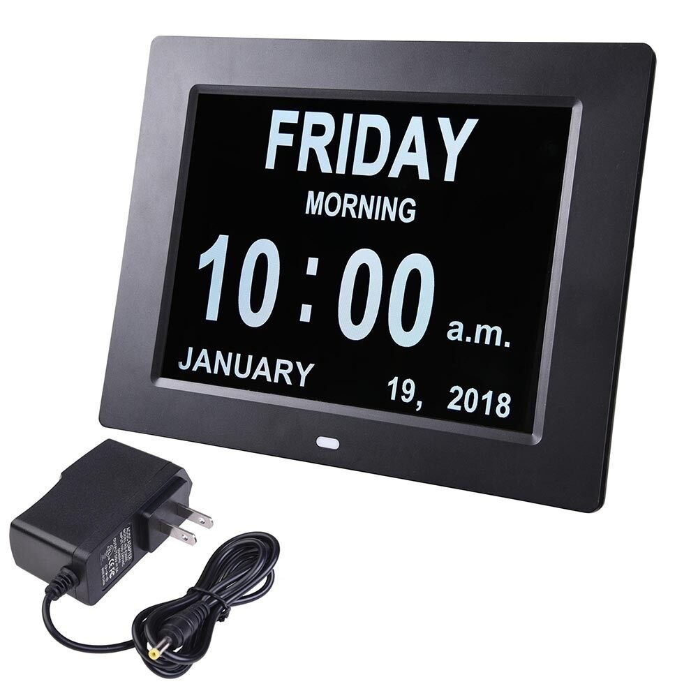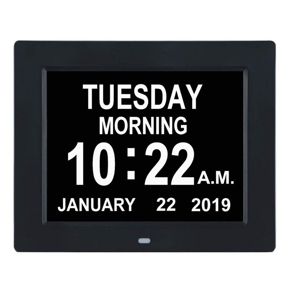• This unique 8-inch high-resolution digital alarm clock can clearly display time, week in a day, all day in a week, month and date in a week, without confusing abbreviations