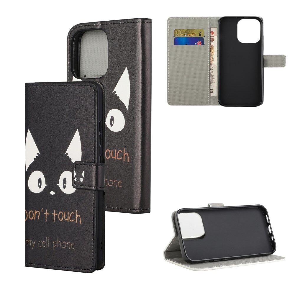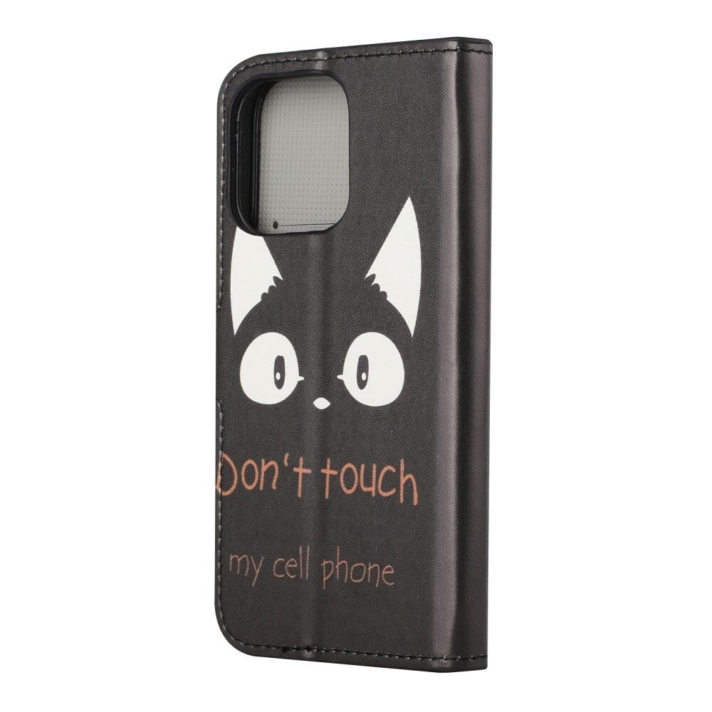 Full Body Protective Pattern Printing PU Leather Wallet Magnetic Closer Shockproof Stand Feature Flip Folio Cover Case for iPhone 13 6.1 inch - Don't Touch My Cell Phone