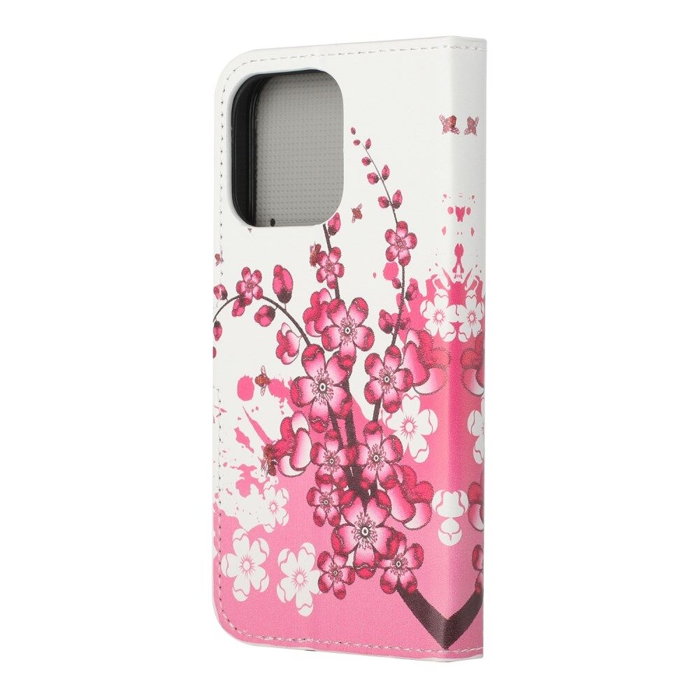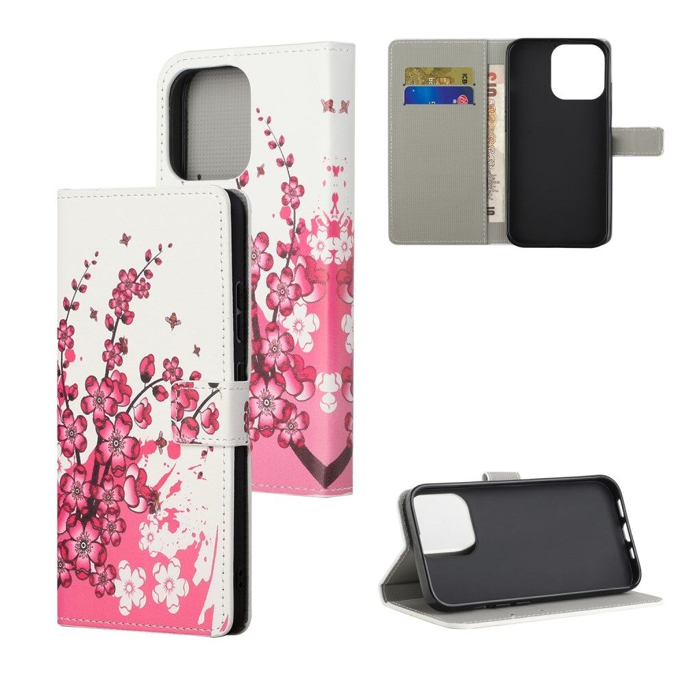 Full Body Protective Pattern Printing PU Leather Wallet Magnetic Closer Shockproof Stand Feature Flip Folio Cover Case for iPhone 13 6.1 inch - Plum Blossom
