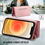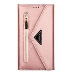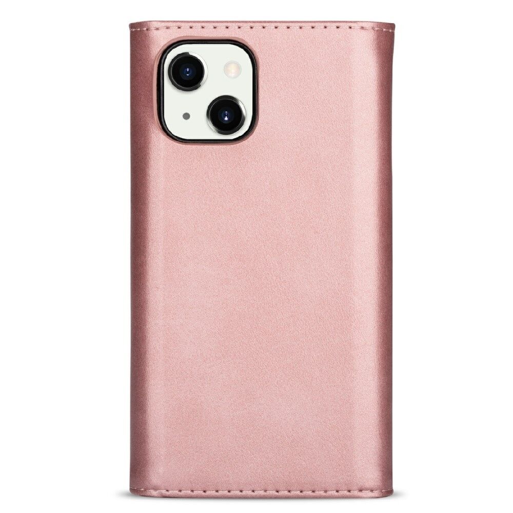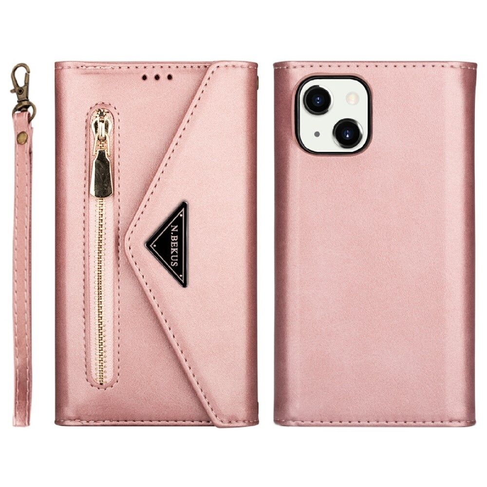 Full Protection Leather Zipper Wallet Design Skin Feeling Phone Case with Stand and Strap for iPhone 13 mini 5.4 inch - Rose Gold