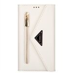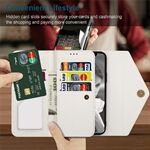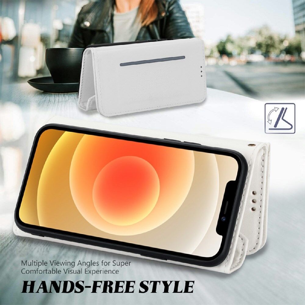 Full Protection Leather Zipper Wallet Design Skin Feeling Phone Case with Stand and Strap for iPhone 13 mini 5.4 inch - White
