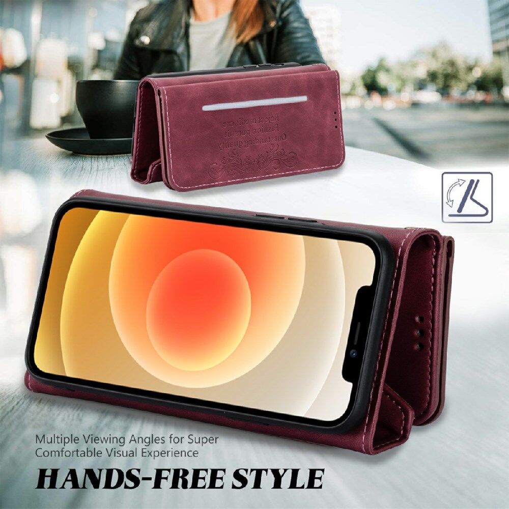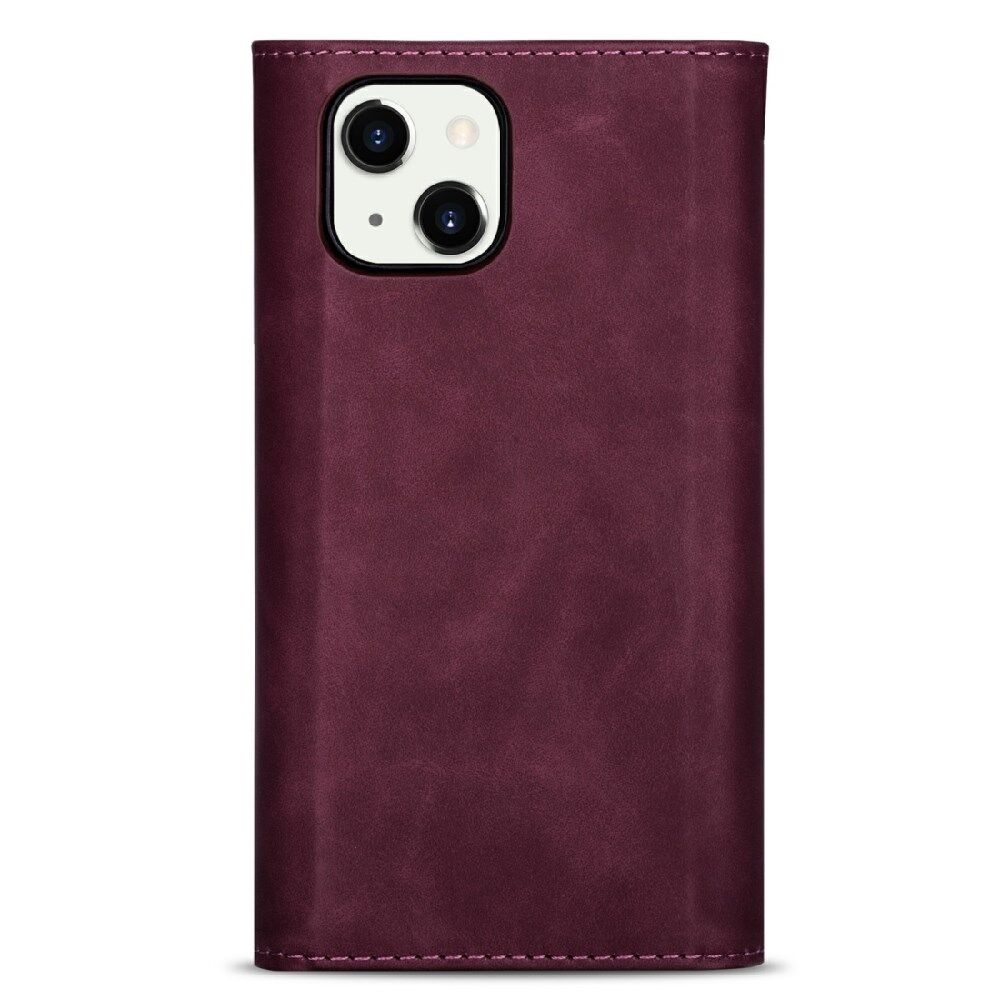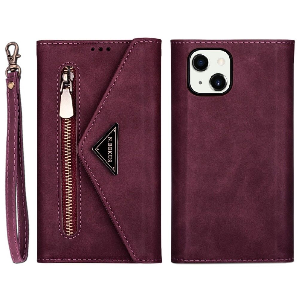 Full Protection Leather Zipper Wallet Design Skin Feeling Phone Case with Stand and Strap for iPhone 13 mini 5.4 inch - Wine Red