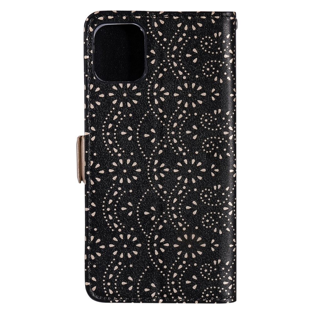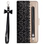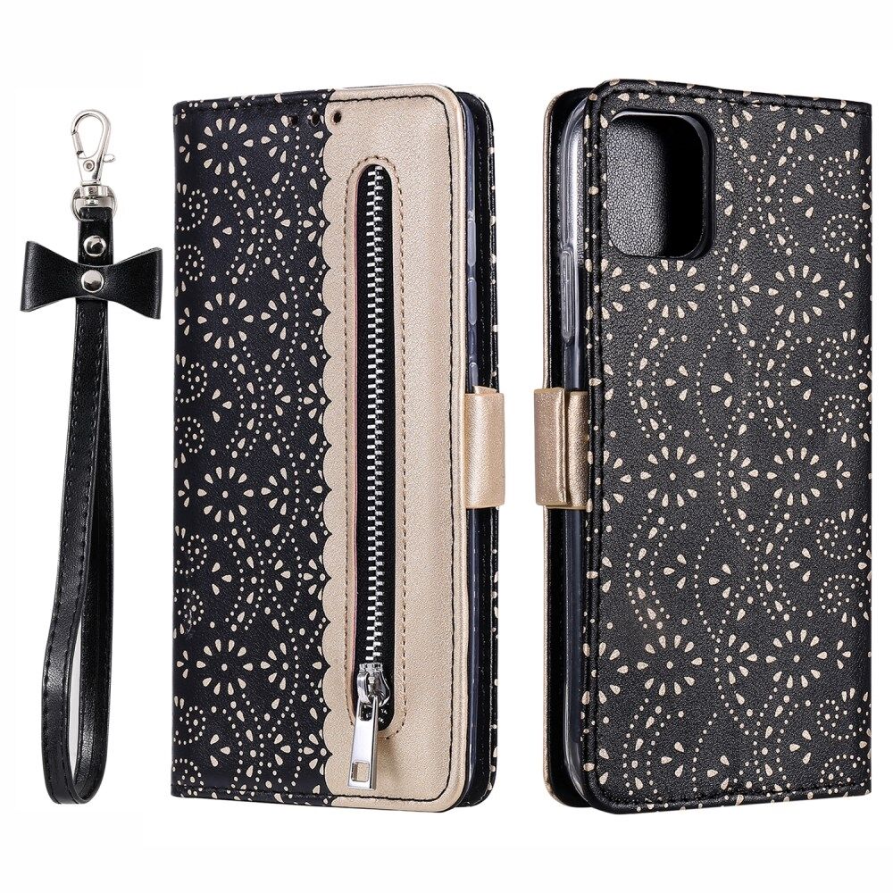 Full Protective Anti-drop Zipper Wallet Lace Leather Case for iPhone 13 mini 5.4 inch - Black