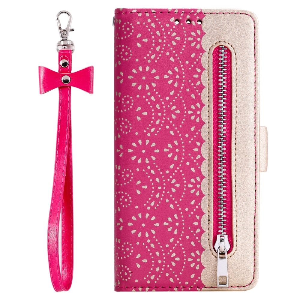 Full Protective Anti-drop Zipper Wallet Lace Leather Case for iPhone 13 mini 5.4 inch - Red