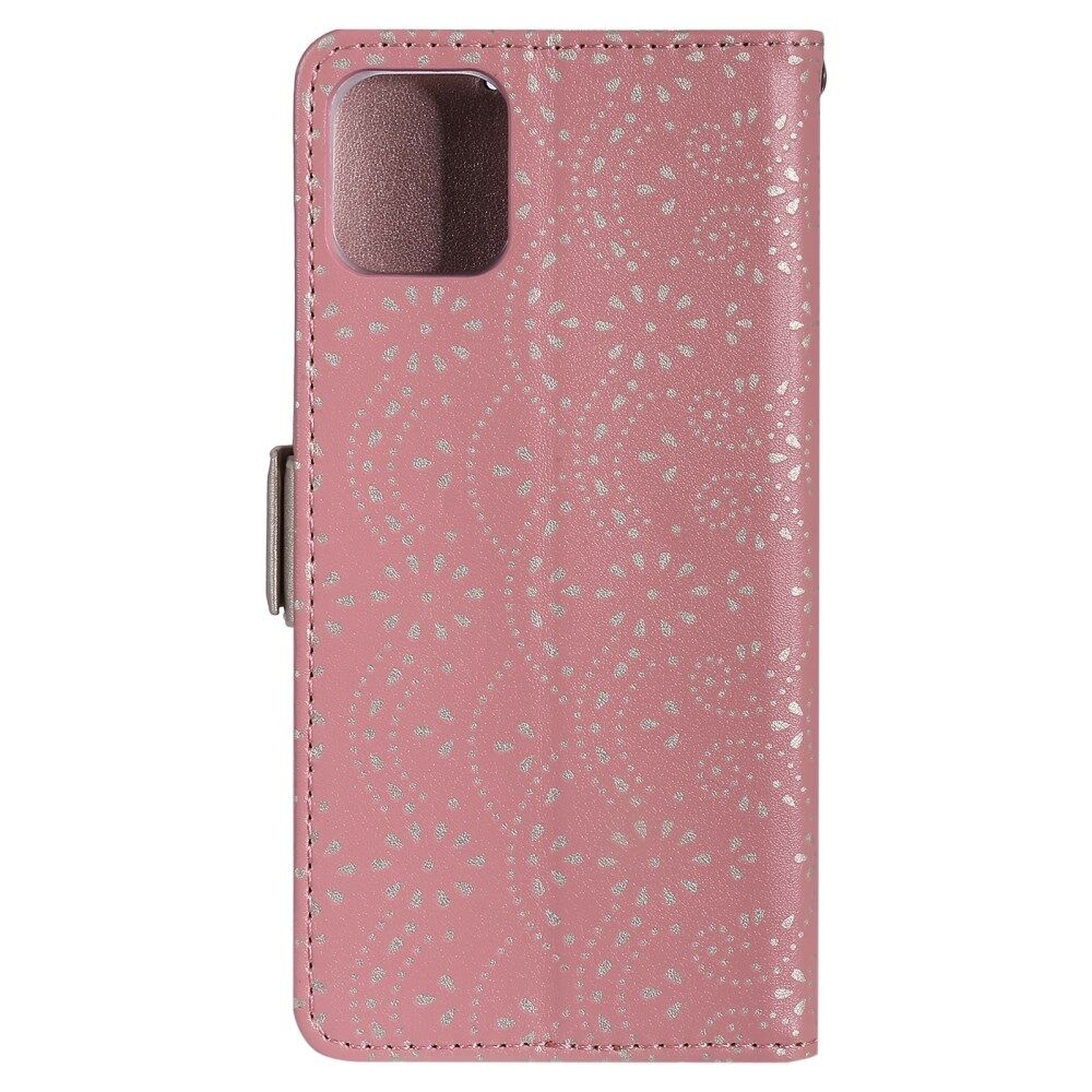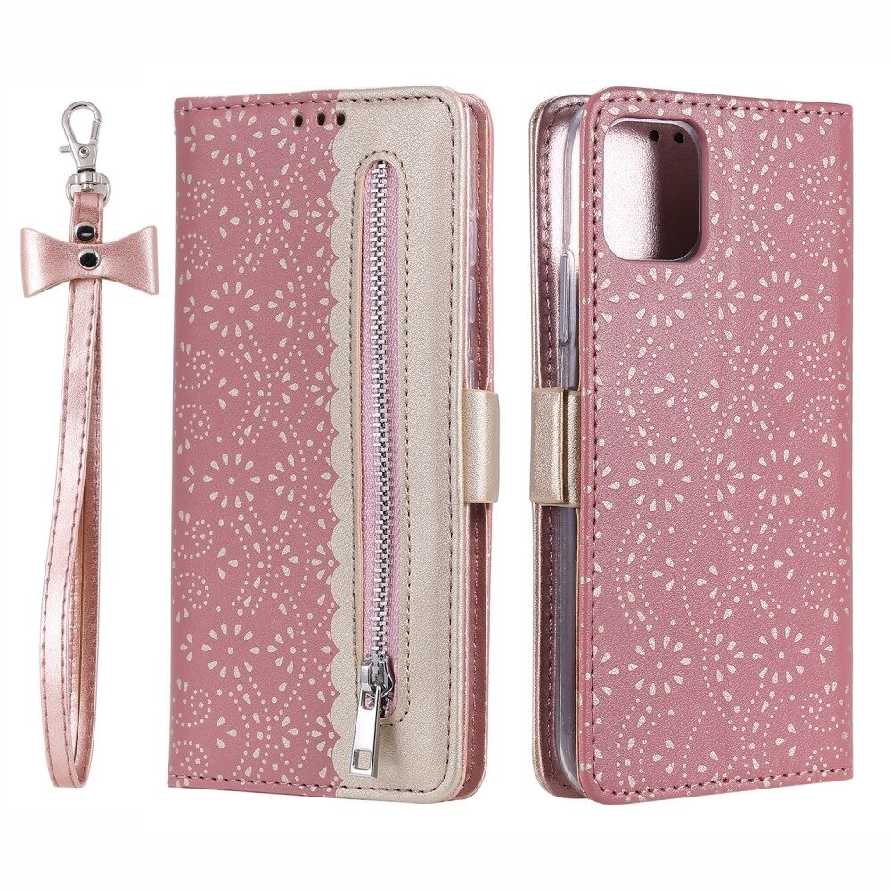 Full Protective Anti-drop Zipper Wallet Lace Leather Case for iPhone 13 mini 5.4 inch - Pink
