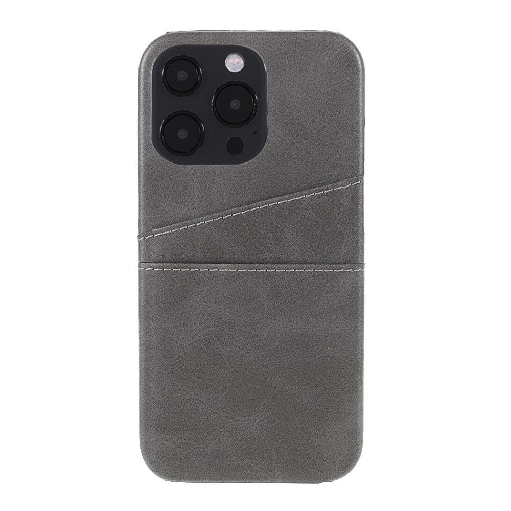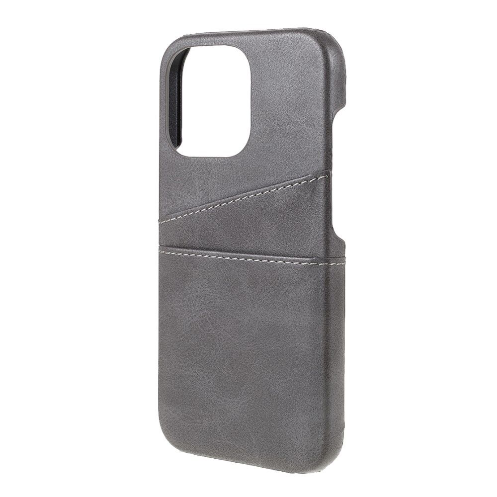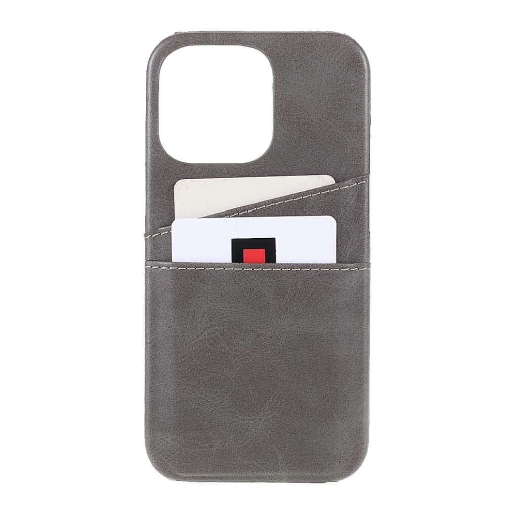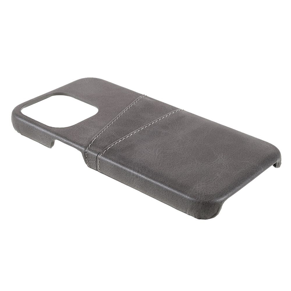 Full Protective Double Card Slots PU Leather Coated PC Cover Shell for iPhone 13 Pro 6.1 inch - Grey