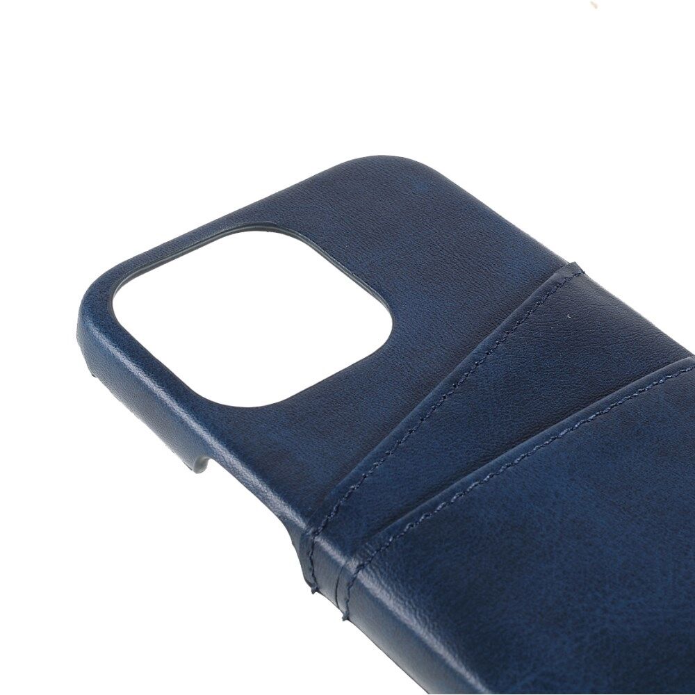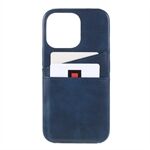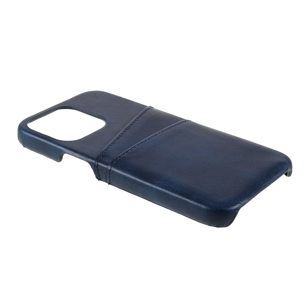 Full Protective Double Card Slots PU Leather Coated PC Cover Shell for iPhone 13 Pro 6.1 inch - Blue