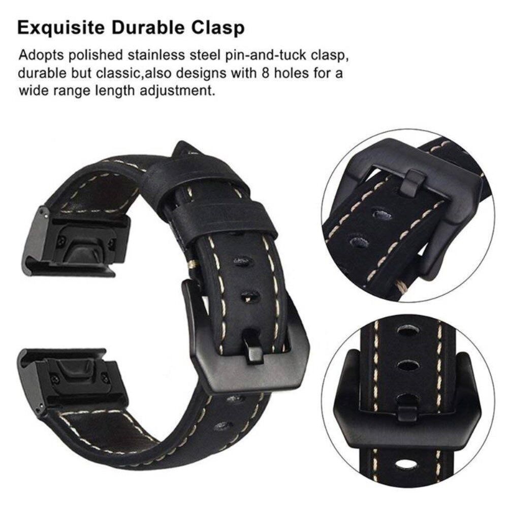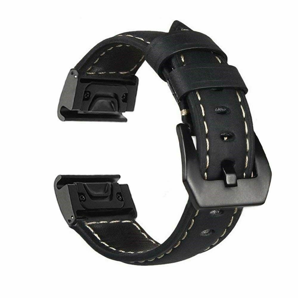Genuine Leather Watchband Replacement Strap for Garmin MARQ Series/Fenix5/5X/5S/Forerunner945/Approach S60 - Black
