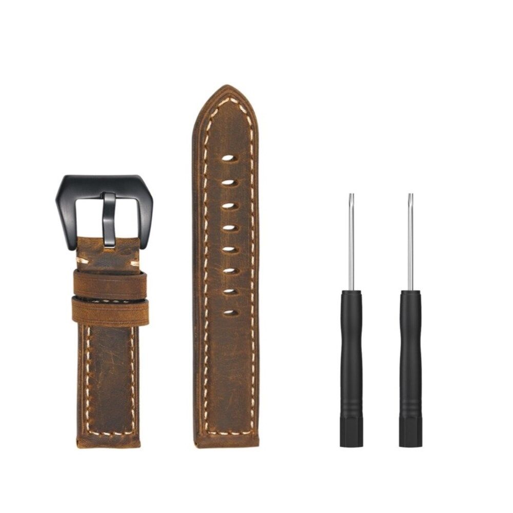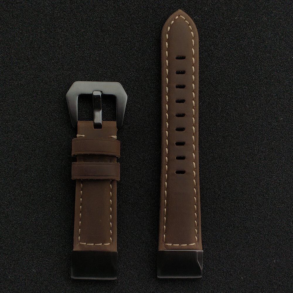 Genuine Leather Watchband Replacement Strap for Garmin MARQ Series/Fenix5/5X/5S/Forerunner945/Approach S60 - Brown