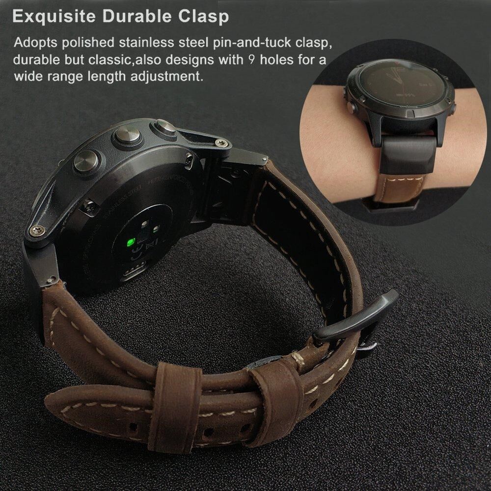 Genuine Leather Watchband Replacement Strap for Garmin MARQ Series/Fenix5/5X/5S/Forerunner945/Approach S60
