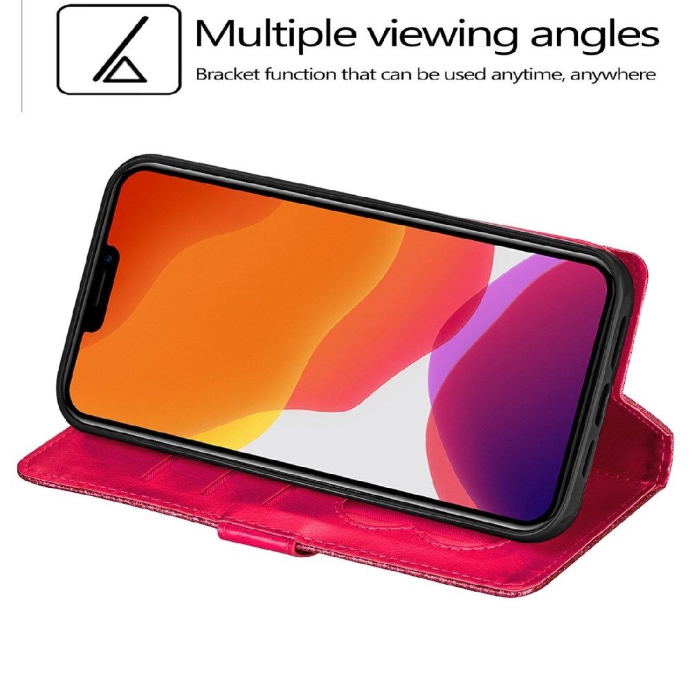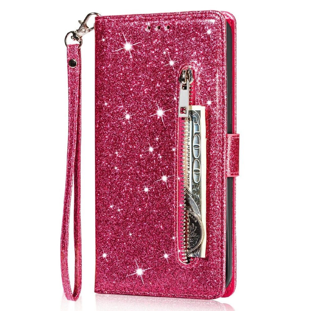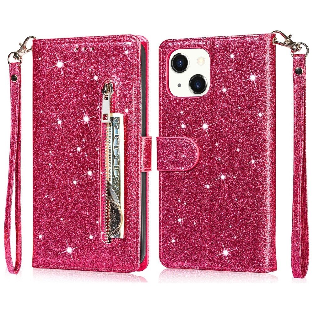 Glitter Sequins All-Round Protection Magnetic Clasp Zipper Pocket Wallet Flip Leather Phone Cover with Stand for iPhone 13 Mini 5.4 inch - Rose