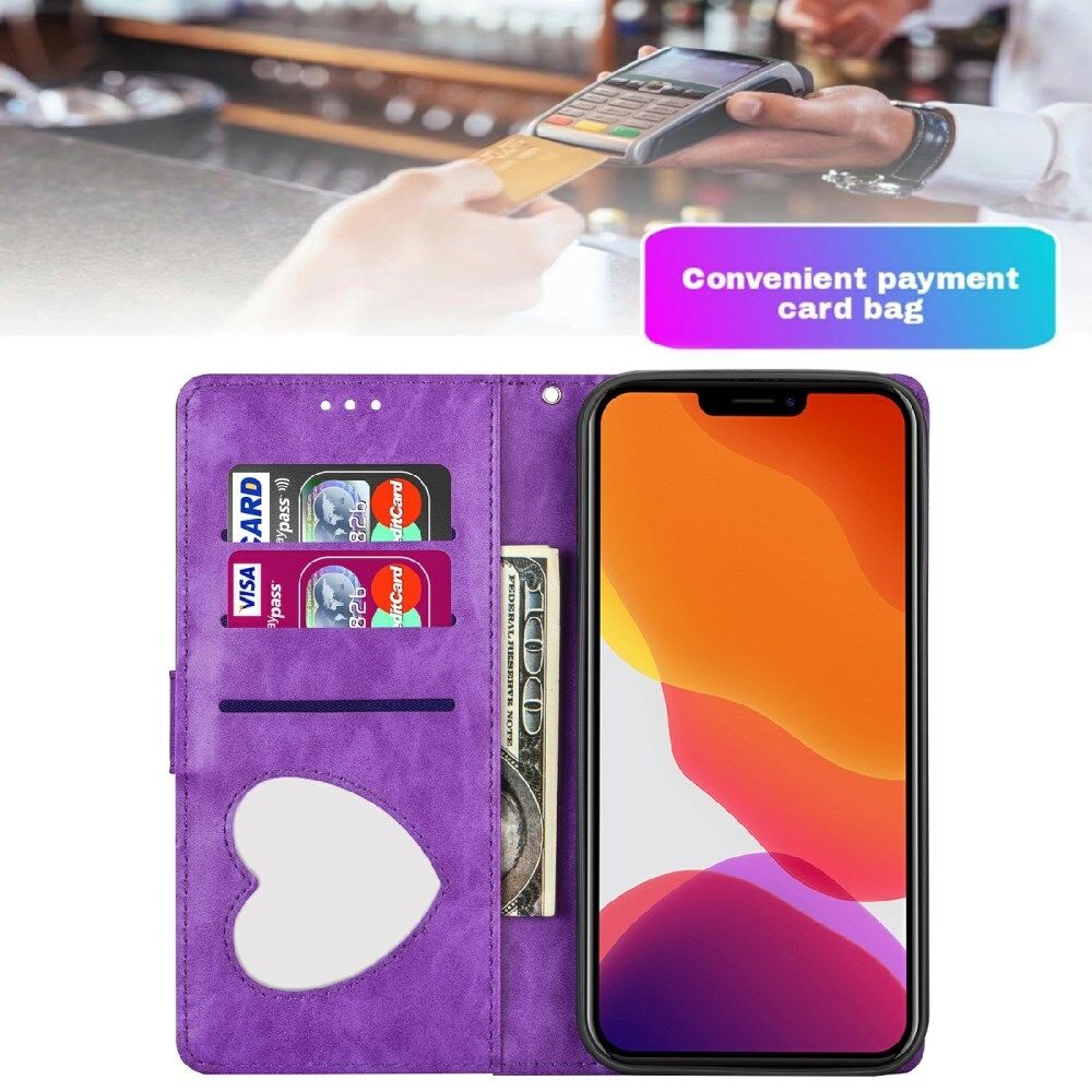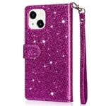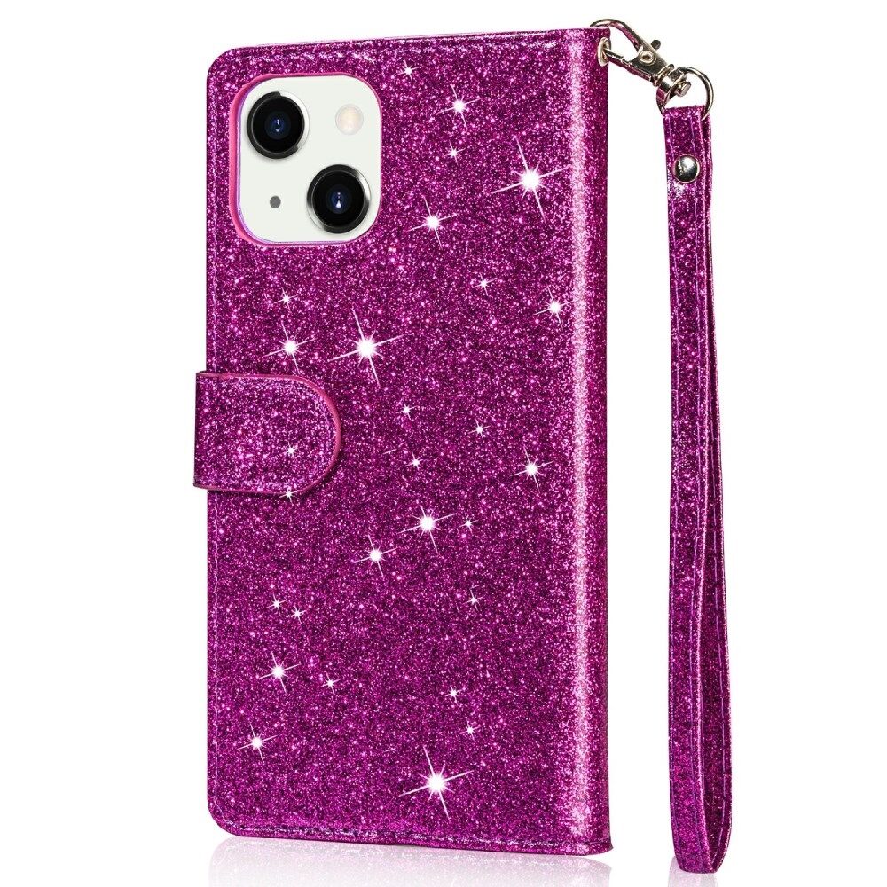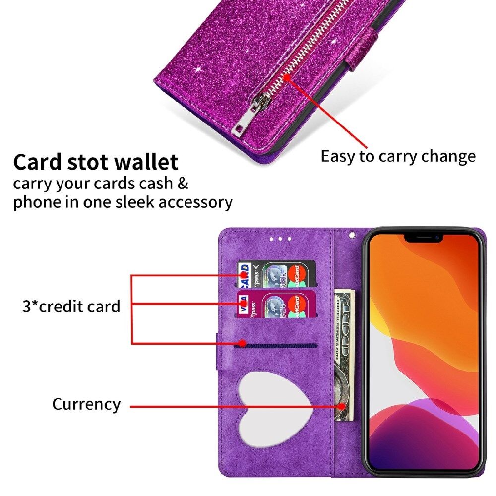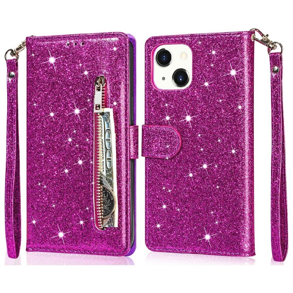 Glitter Sequins All-Round Protection Magnetic Clasp Zipper Pocket Wallet Flip Leather Phone Cover with Stand for iPhone 13 Mini 5.4 inch - Purple