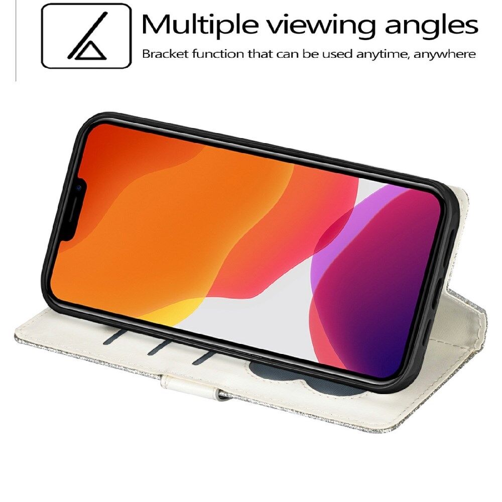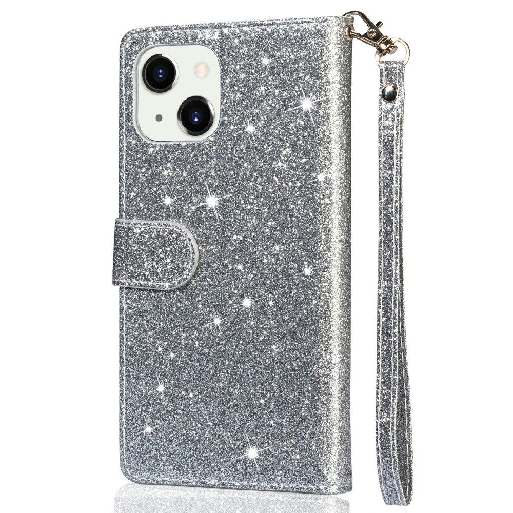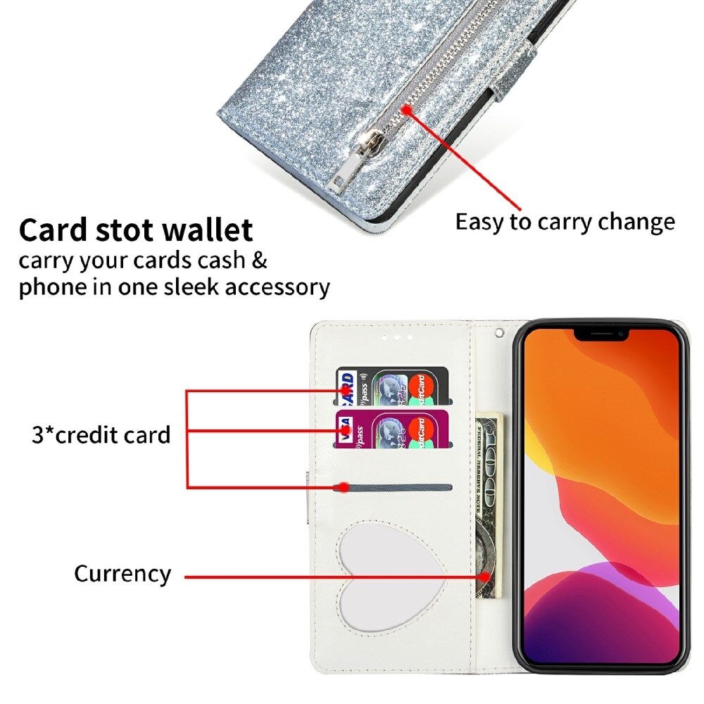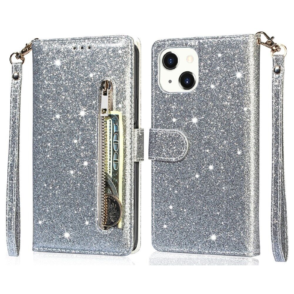Glitter Sequins All-Round Protection Magnetic Clasp Zipper Pocket Wallet Flip Leather Phone Cover with Stand for iPhone 13 Mini 5.4 inch