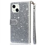Glitter Sequins All-Round Protection Magnetic Clasp Zipper Pocket Wallet Flip Leather Phone Cover with Stand for iPhone 13 Mini 5.4 inch - Grey