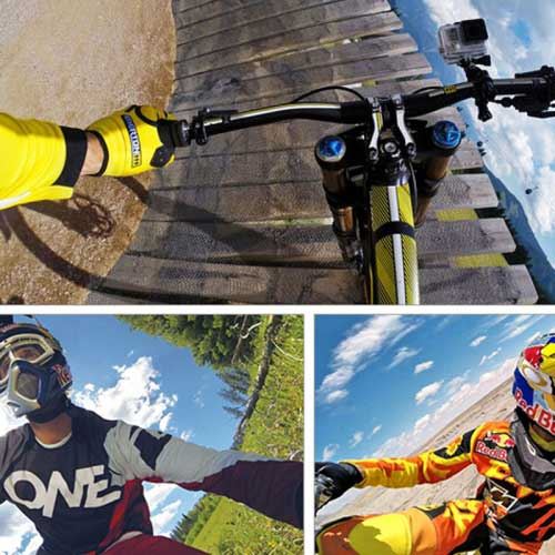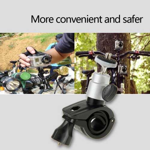 Really smart holder for your GoPro camera, for mounting on your bicycle or motorcycle handlebar (max. 3cm in diameter).