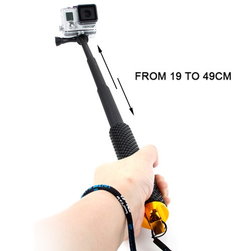 The bar is easy to use and the camera is easy to get on and off, without the use of tools. The wrist strap secures your camera should you lose the pole.