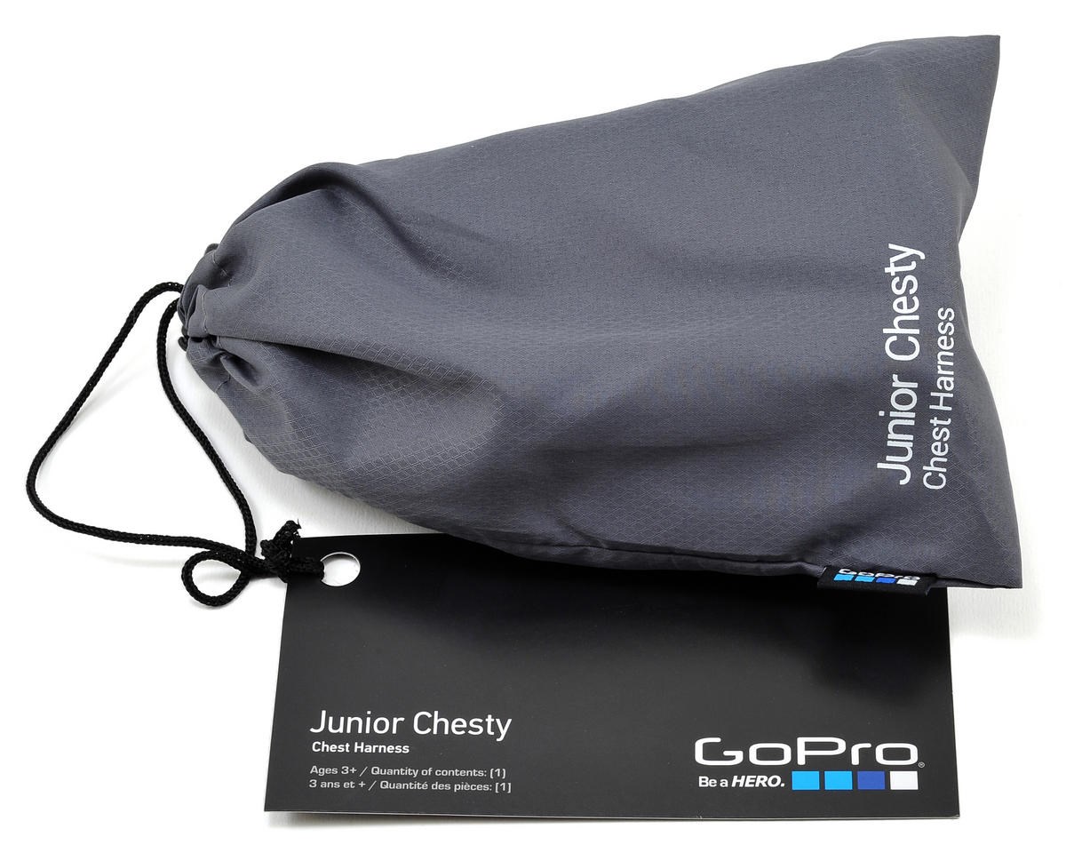 This Junior Chest Mount Harness from GoPro is ideal for children ages 3 and up. The adjustable chest strap, which is applied over your head and closed with a snap buckle, securely holds it in place and you get great pictures and videos without shaking. The wide braces are also elastic, providing the optimal fit for your child.