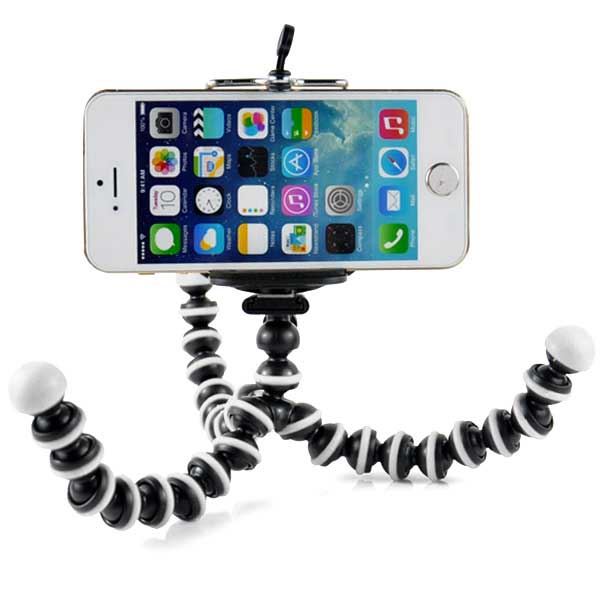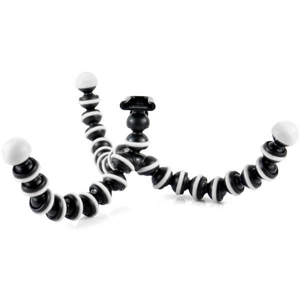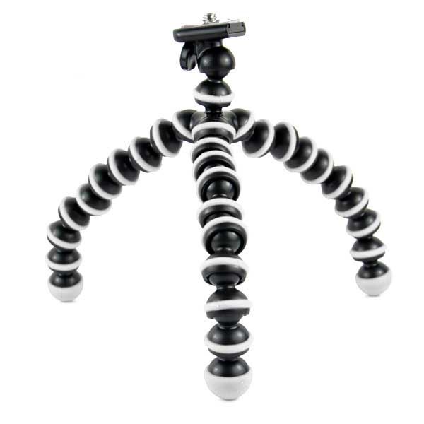 With a flexible octopus design, made of hard plastic with rubber rings, you get a solid GorillaPod for your smartphone or small camera. Very good quality with a height of approx. 17 cm.