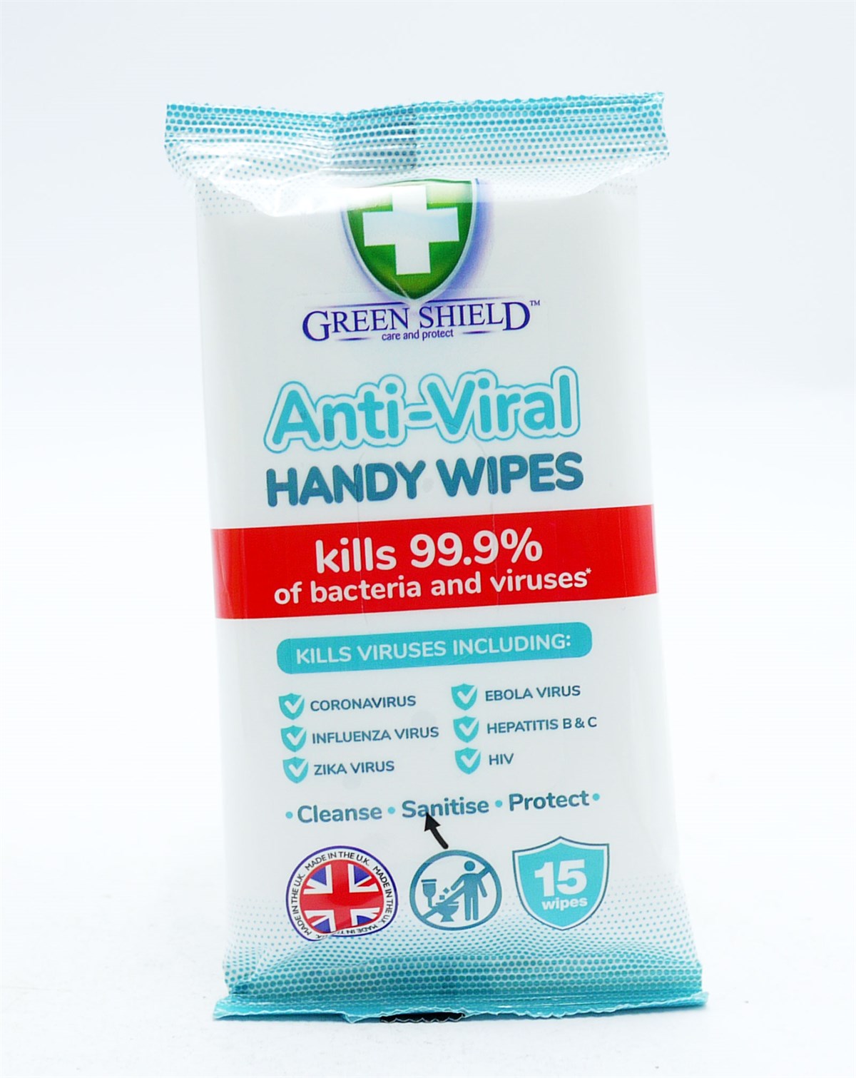 Green Shield Anti-Viral Hand Wipes - Pocket Size - 15 pcs.