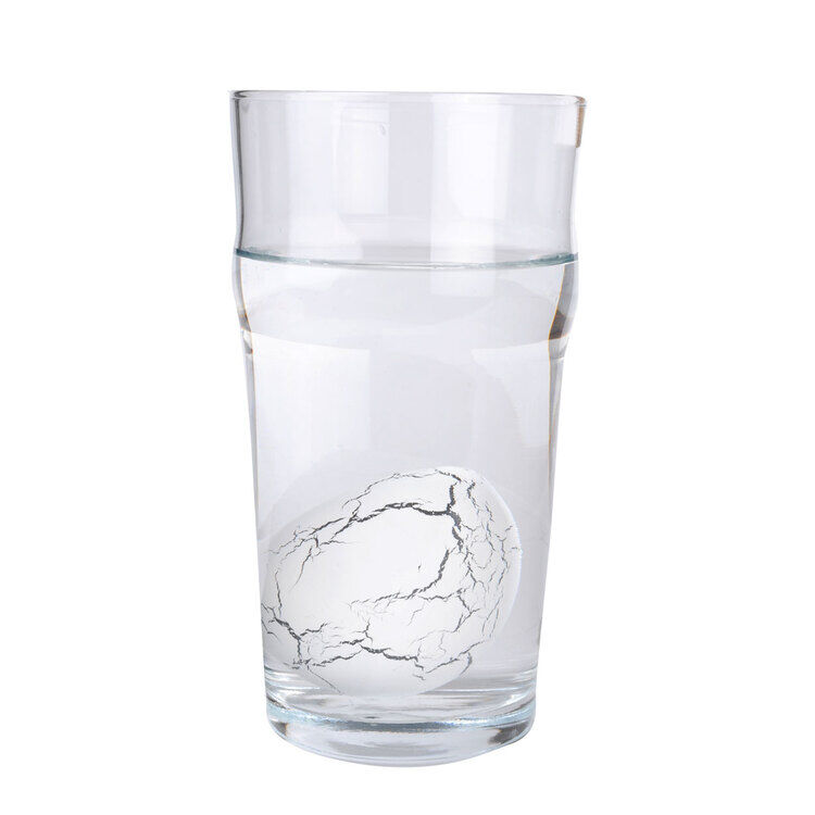 Put the egg in a glass of water and watch your dinosaur grow! After 12 to 24 hours the egg will break and your dino will slowly crawl out. If you want to let the dinosaur grow even further, put it back in the water!