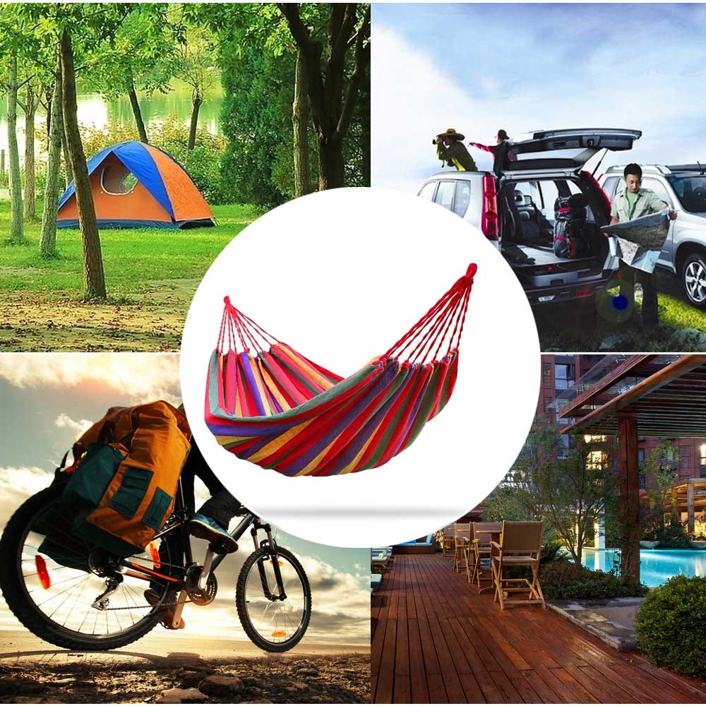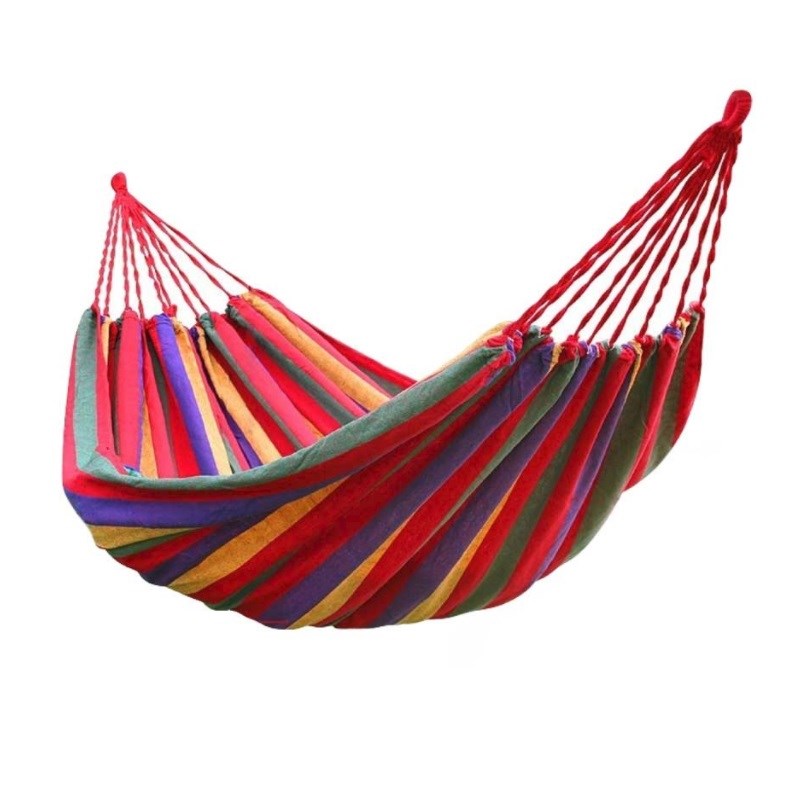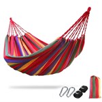 Beautiful rainbow colored hammock that can easily be included in the included bag.