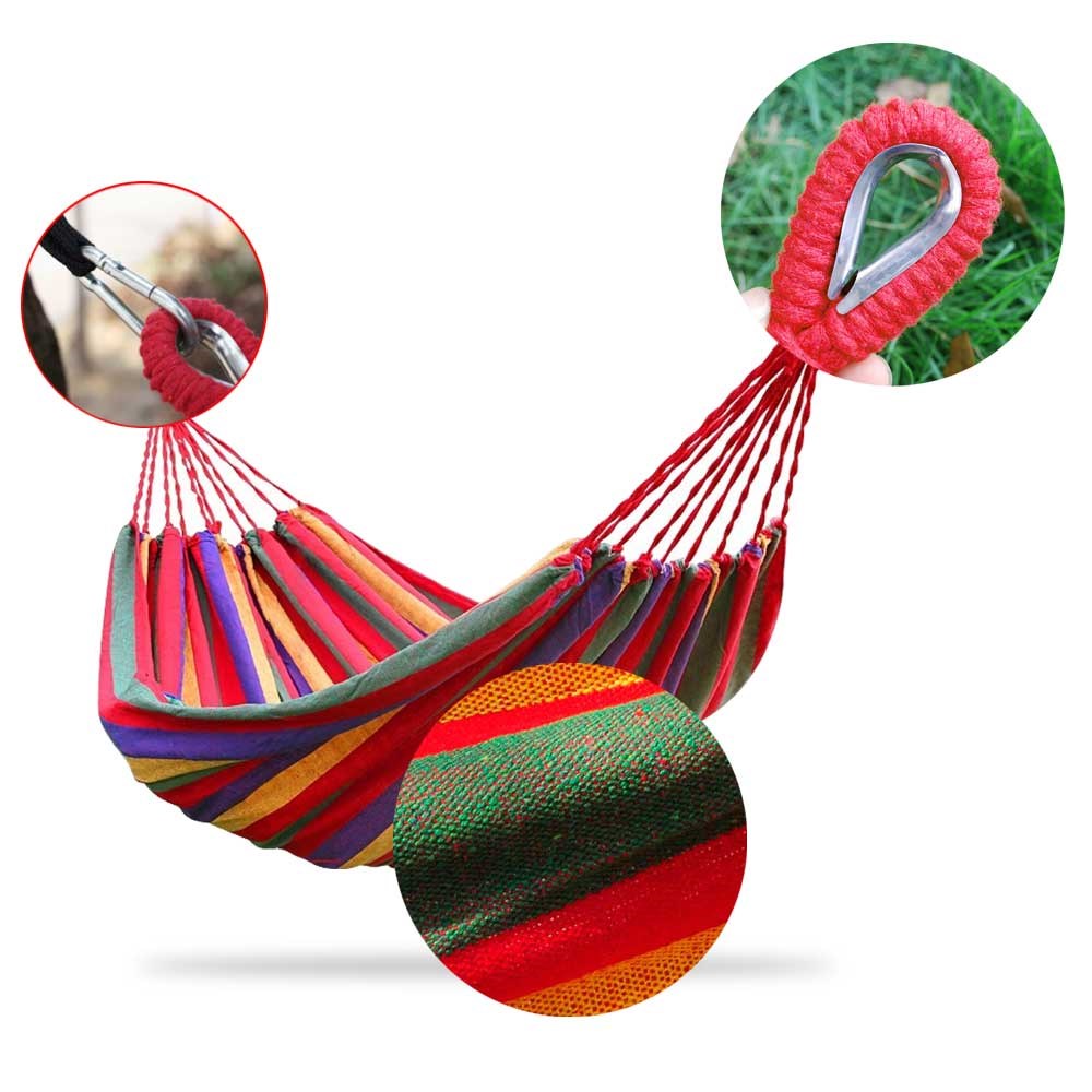 This hammock is double the size for you and your boyfriend or for quality time with your child, you totally choose who you want to share it with. The ends are easily attached with carabiner hooks and ropes to trees in the garden or with a bracket for a wall or plank.