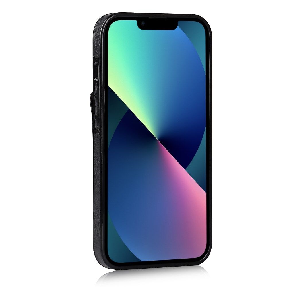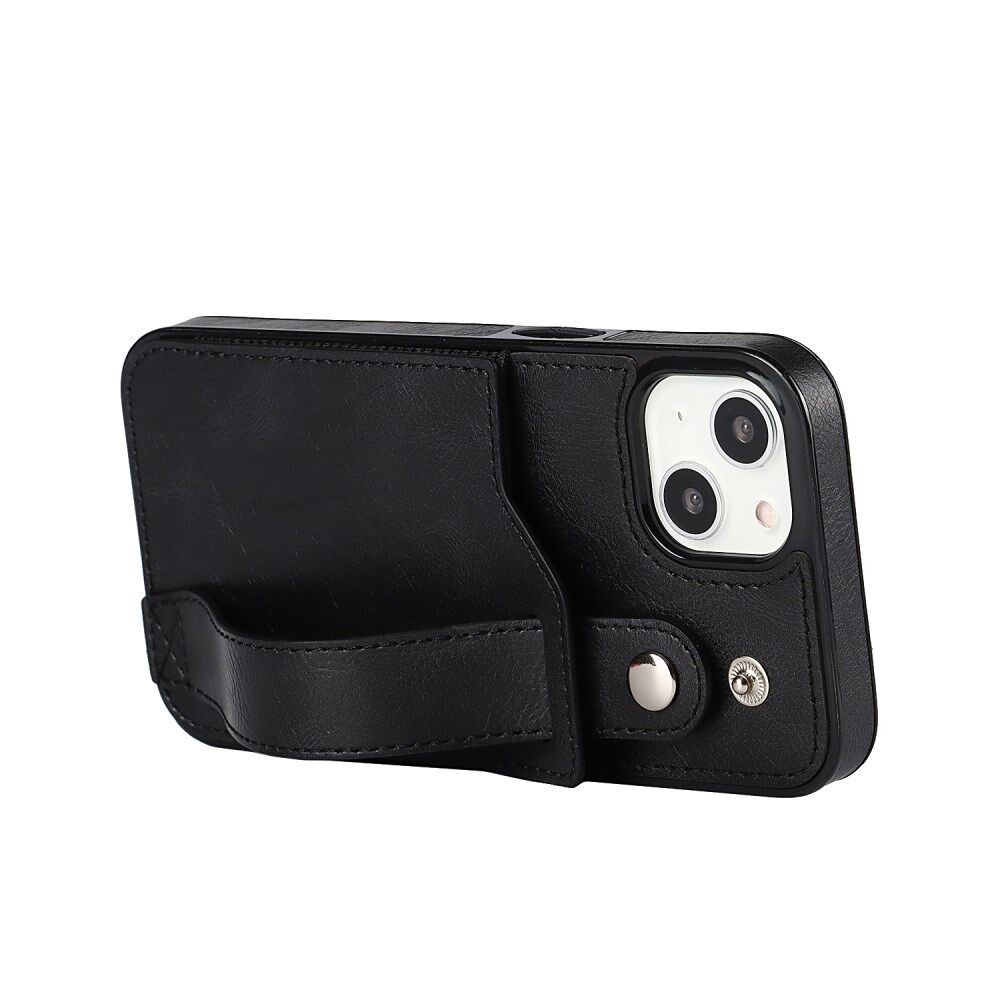 Hand Strap Kickstand Card Slot Design RFID Blocking Function PU Leather Coated TPU Phone Case for iPhone 13 mini 5.4 inch - Black